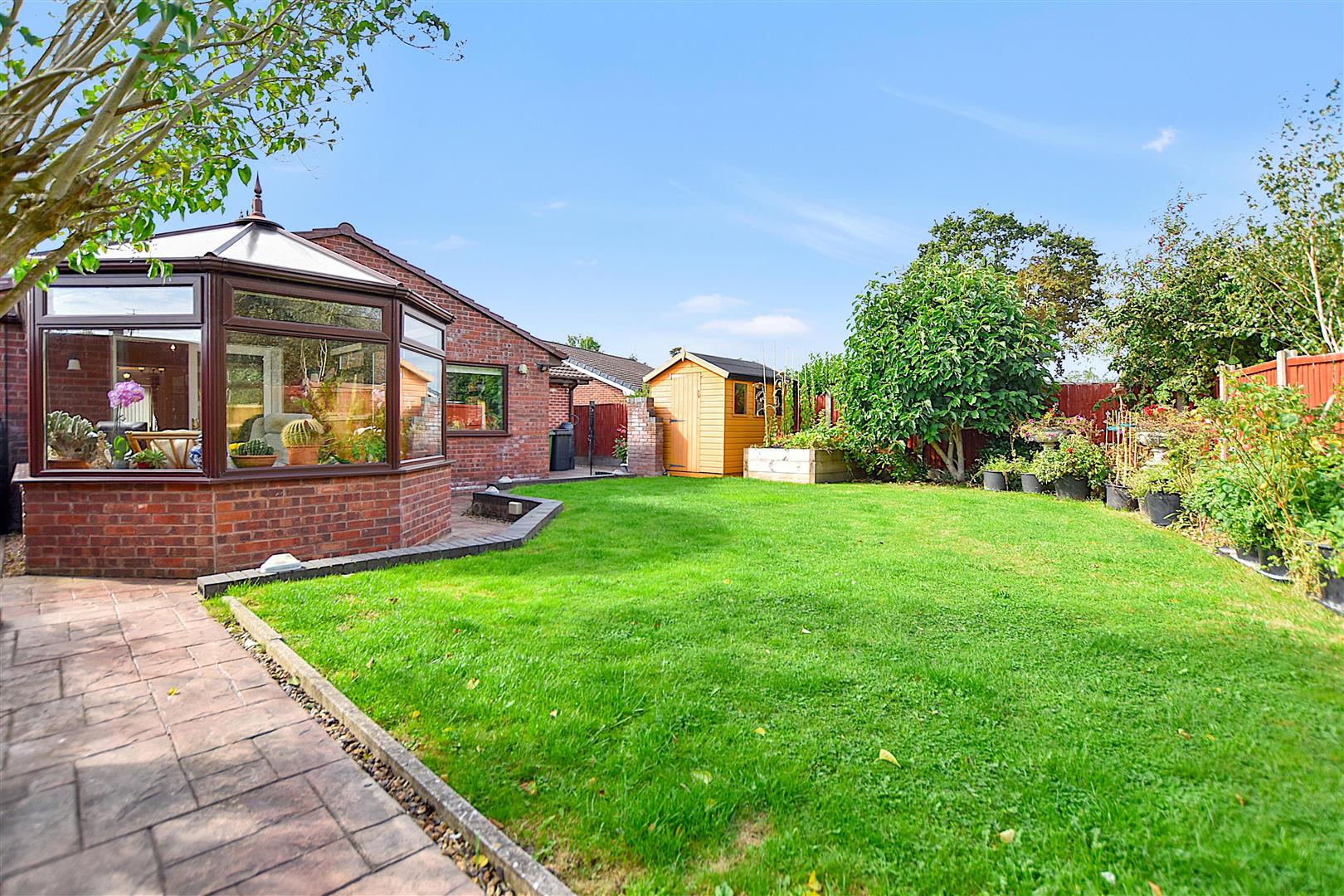 This impressive bungalow is approached along a triple width concrete patterned drive providing ample parking and guest parking, alongside a lawned garden with decorative gravel border. Gated paths either side lead to the rear garden which is a particular feature due to its privacy and includes an illuminated concrete patterned path, patio area, lawn, flower beds, cold water tap, external socket and lighting.
