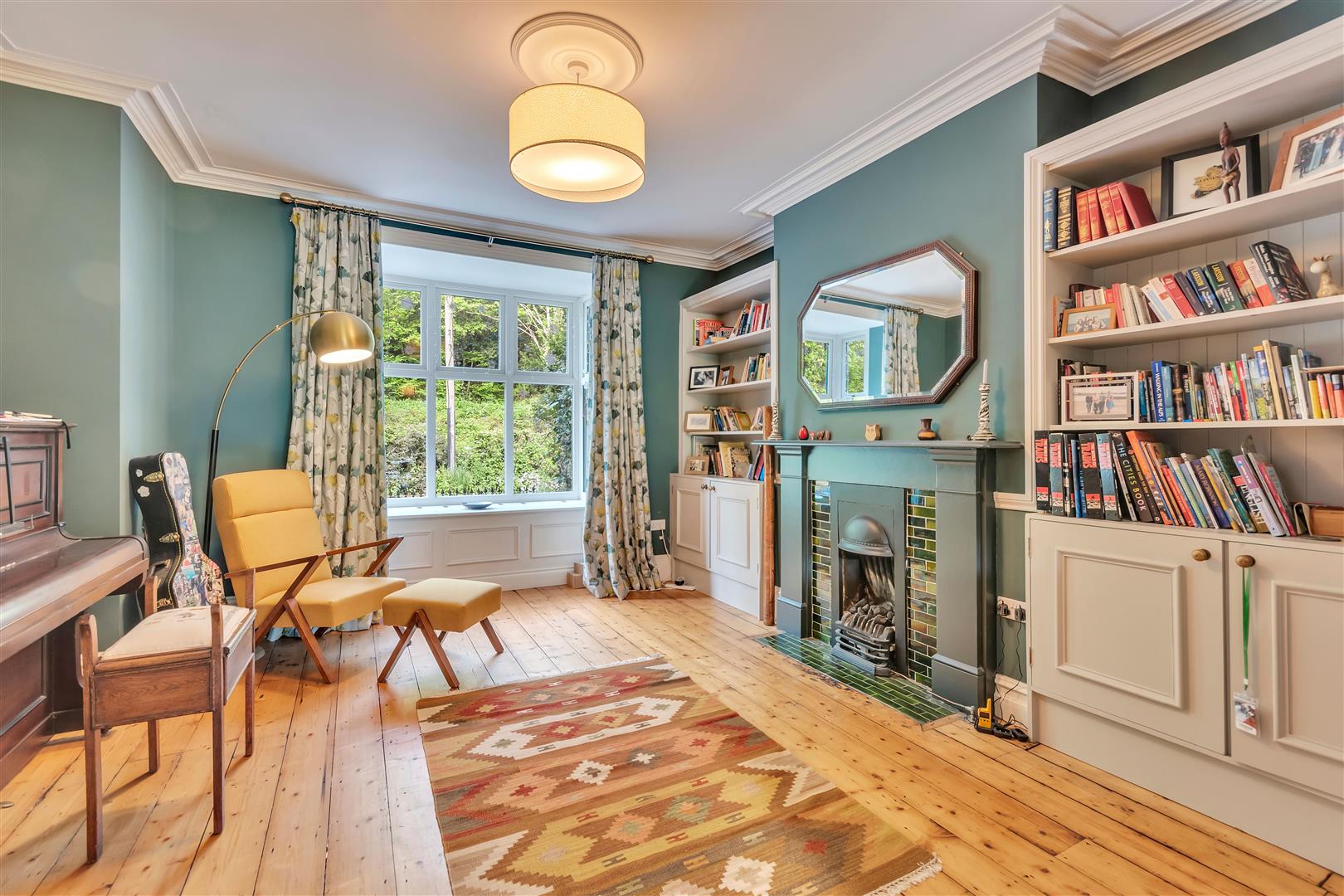 Large bay window to rear overlooking the Railway and River, gas fire, under floor heating and wooden flooring.