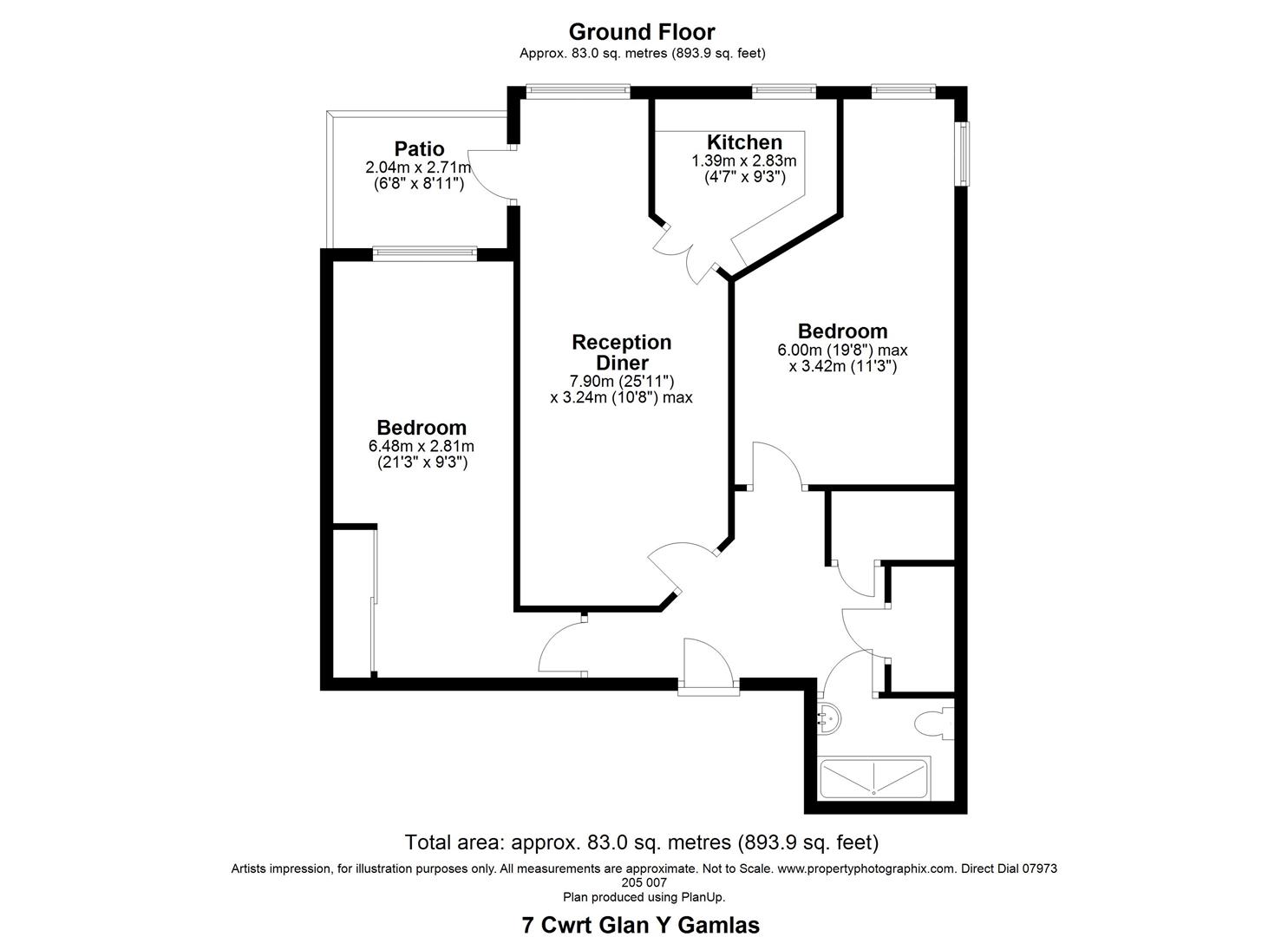 Private patio, with small lawn area and well stocked borders from which to enjoy the views over the town. The gardens and ground surrounding the development are maintained under the service agreement and there are car parking spaces for the residents.