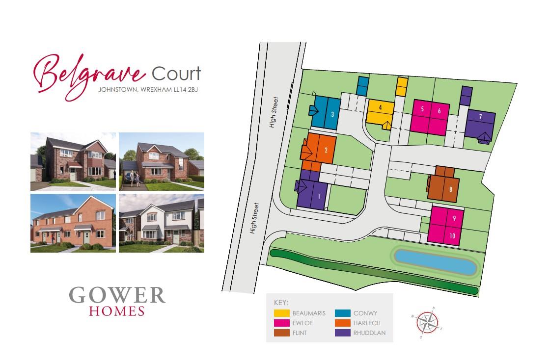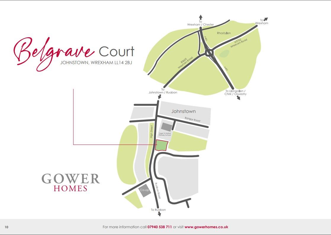 Proceed along the A483 By Pass from Wrexham in a Southerly direction for approx. 2 miles taking the exit signposted Rhosllanerchrugog. At the roundabout take the 3rd exit and continue through Pentre Bychan into Johnstown. Continue through the 2 sets of traffic lights and after a short distance Belgrave Court will be observed on your left.