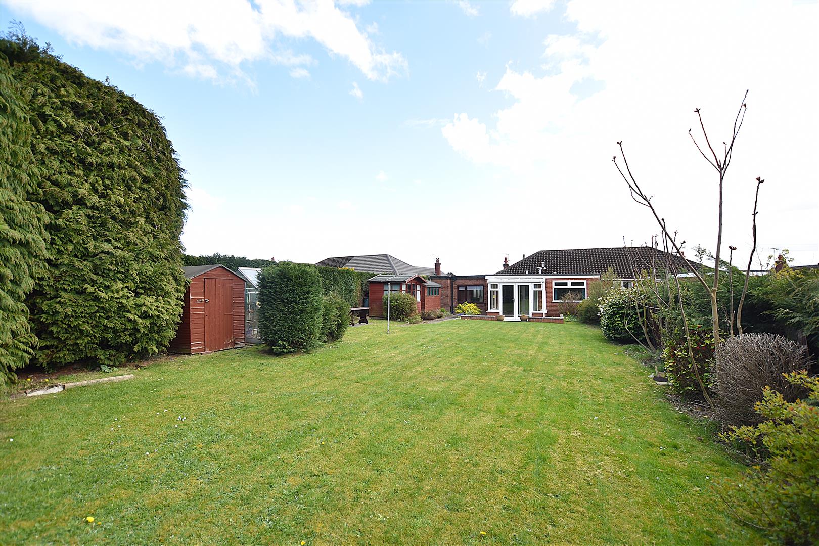An extended and spacious 3 bedroom semi detached bungalow featuring a lovely established rear garden enjoying a good degree of privacy located within the sought after area known as Garden Village with its good range of amenities and frequent bus service to Wrexham and Chester. The accommodation has the benefit of gas fired central heating and mostly Upvc double glazing and briefly comprises an enclosed entrance porch, hall with store cupboard, lounge, fitted kitchen with an open aspect to the dining room, enclosed side porch, spacious sitting room with patio doors opening to the conservatory that overlooks the rear garden, bedroom 1 with en-suite wet room, bedroom 2 with fitted wardrobes/store cupboards, bedroom 3 with wash basin and store cupboards, home office/dressing room and a family bathroom. Externally, a private drive leads to the car port alongside a lawned front garden with path to entrance door. A path continues to the sunny aspect rear garden with patio area, lawn, established flower beds and trees, store sheds and side views towards the Welsh hills. NO CHAIN. Energy Rating – D (58)