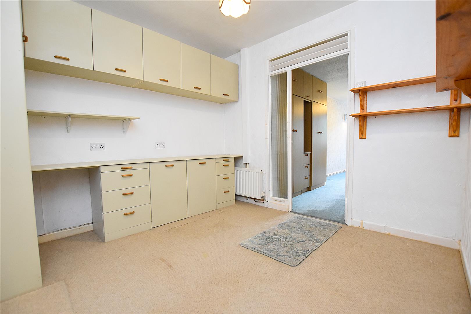 A versatile room with fitted storage cupboards, work surface areas and radiator. Connecting door to bedroom one and entrance hall.