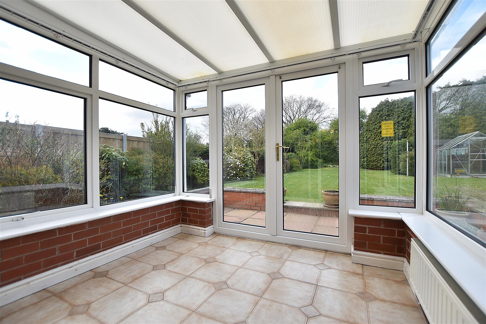Enjoying a pleasant aspect through upvc double glazed windows on a brick plinth, radiator, electric sockets, tiled flooring and double glazed French doors opening to the rear garden.