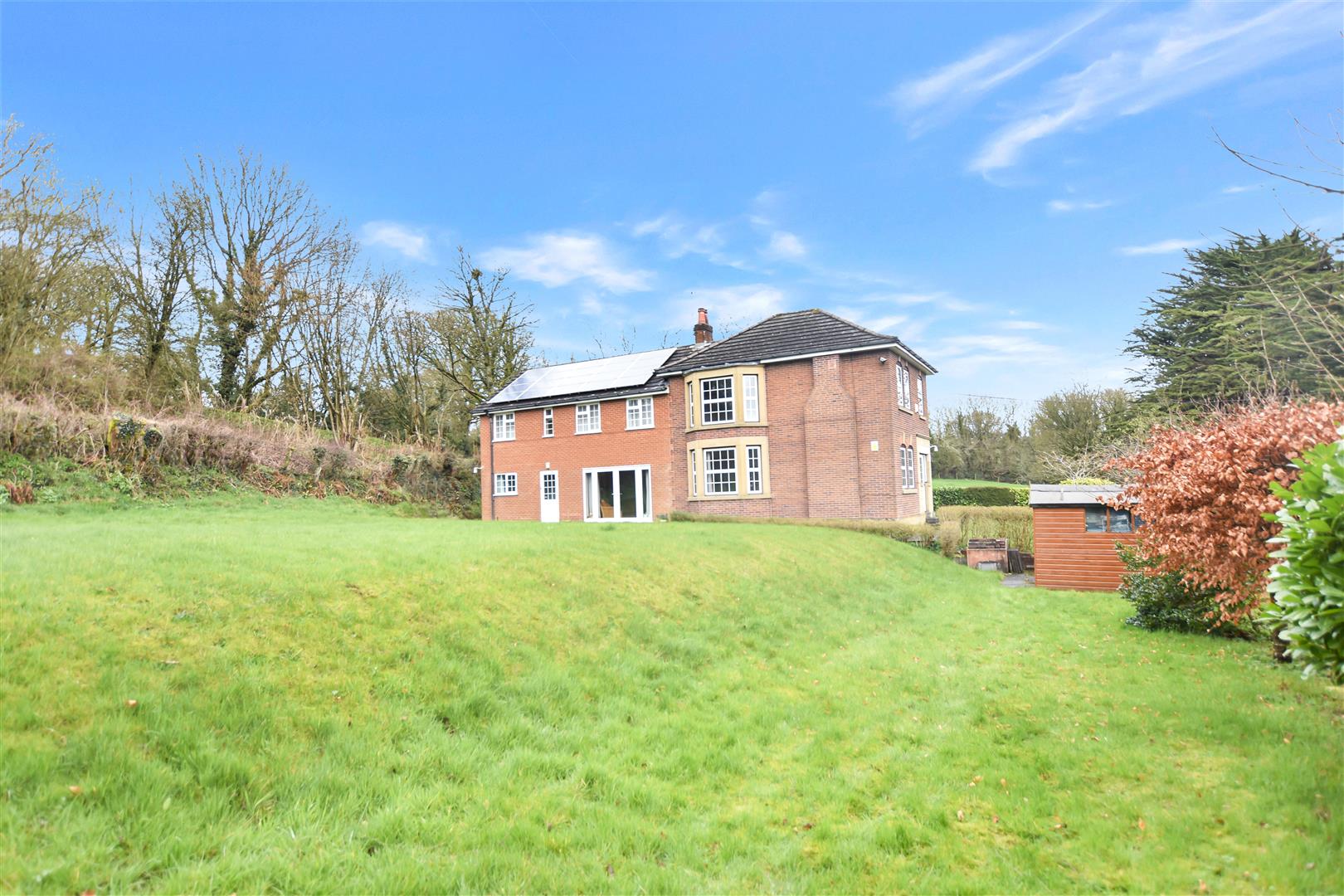 A substantial 8 bedroom detached family home set behind double gates within gardens extending to approximately 0.6 acre enjoying stunning views towards the Welsh hillside and country park. Located in the semi rural village of Minera with its picturesque countryside, local pub/restaurant, Primary School and yet just a short drive to Wrexham and link roads to Mold, Chester and Shropshire, Pen y Nant Cottage has been extended by the current owners and previously used as a residential outdoor activity centre as well as a family home. The accommodation briefly comprises an entrance hall with main staircase leading to 1st floor landing, sitting room, bay window fronted dining room that adjoins the well fitted kitchen with granite work surface areas, utility and shower room. The light and airy lounge takes full advantage of the views through French doors, inner hall with 2nd staircase and access into an additional open plan kitchen/dining /lounge to suit a dependant relative. The 1st floor is divided into 2 sections with the principal bedroom, 2 further bedrooms and bathroom accessed of the main staircase and 5 further bedrooms, a shower room and washroom accessed from the 2nd staircase. Externally, the private gated drive provides parking for up to 6 cars and the extensive gardens extend mainly to the side and rear providing excellent outdoor entertaining space for both children and adults whilst having the pleasure of the views and setting. An additional benefit are the energy efficient solar panels proving an annual income and lower electric charges. Energy Rating – D (61)