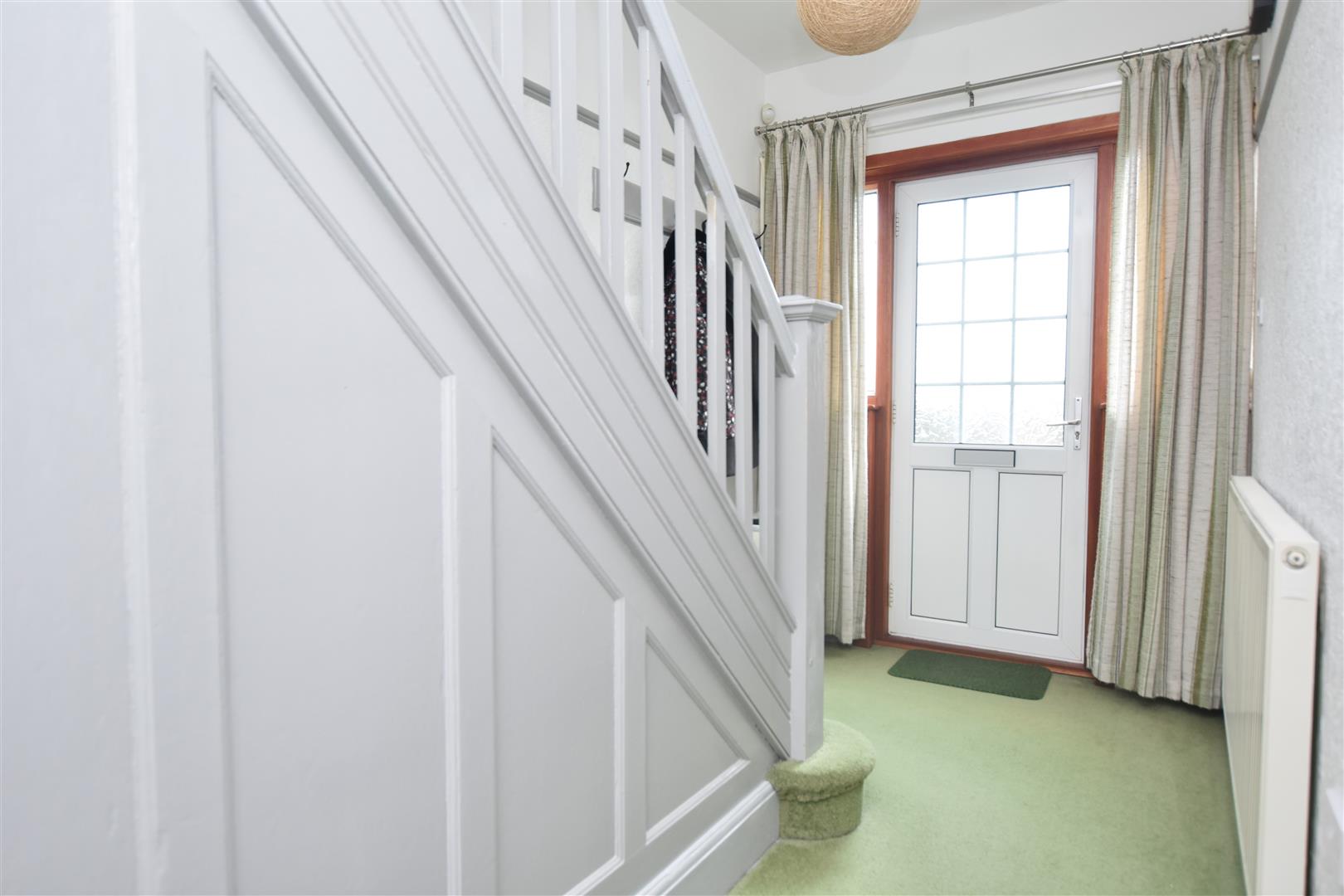 Having stairs to first floor landing, radiator, coat hanging space, original panelled doors and useful understairs storage cupboard with aluminium double glazed window.