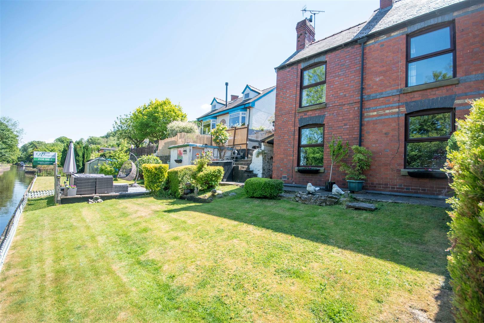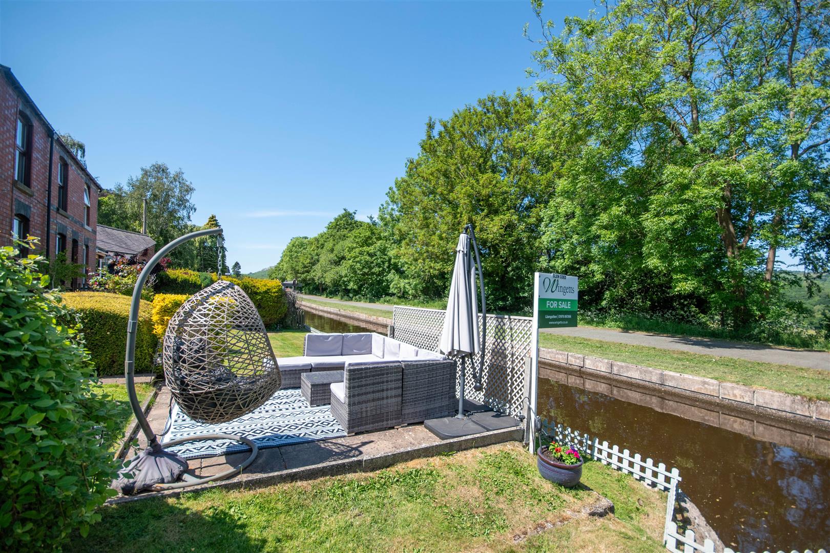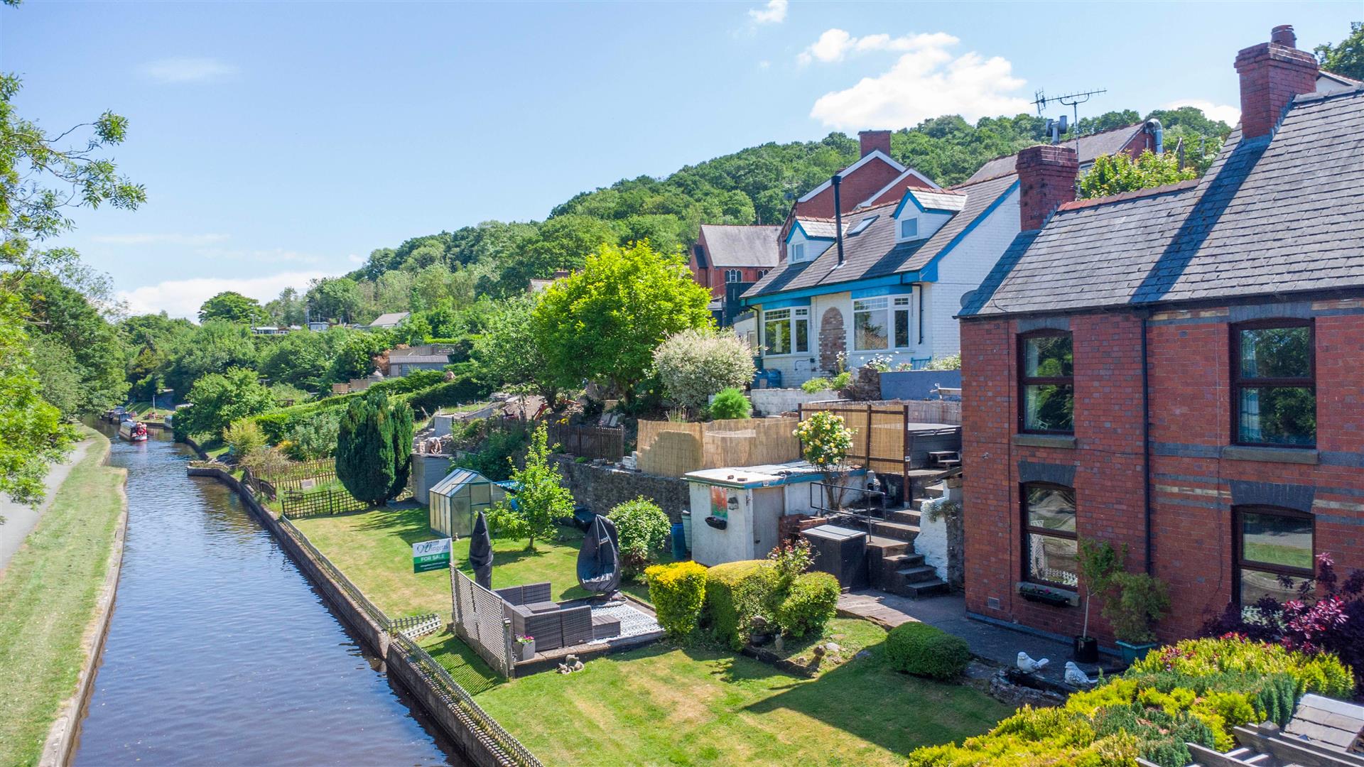 Enjoying a fantastic position adjoining the Llangollen Canal with panoramic views across the Dee Valley, this Victorian semi detached house offers spacious reception rooms and bedrooms along with extensive garden, patio and hot tub area. The accommodation benefits from double glazing and gas fired central heating, briefly comprises lounge with wood burner, dining room and modern kitchen. On the first floor there are three bedrooms and modern family bathroom. Externally, the property is approached via the canal with private parking to rear, steps lead down to the hot tub area and continue into the delightful sunny aspect garden with an excellent outdoor entertaining space and large lawned garden from which to enjoy the narrow boats on the Canal and picturesque scenery beyond.