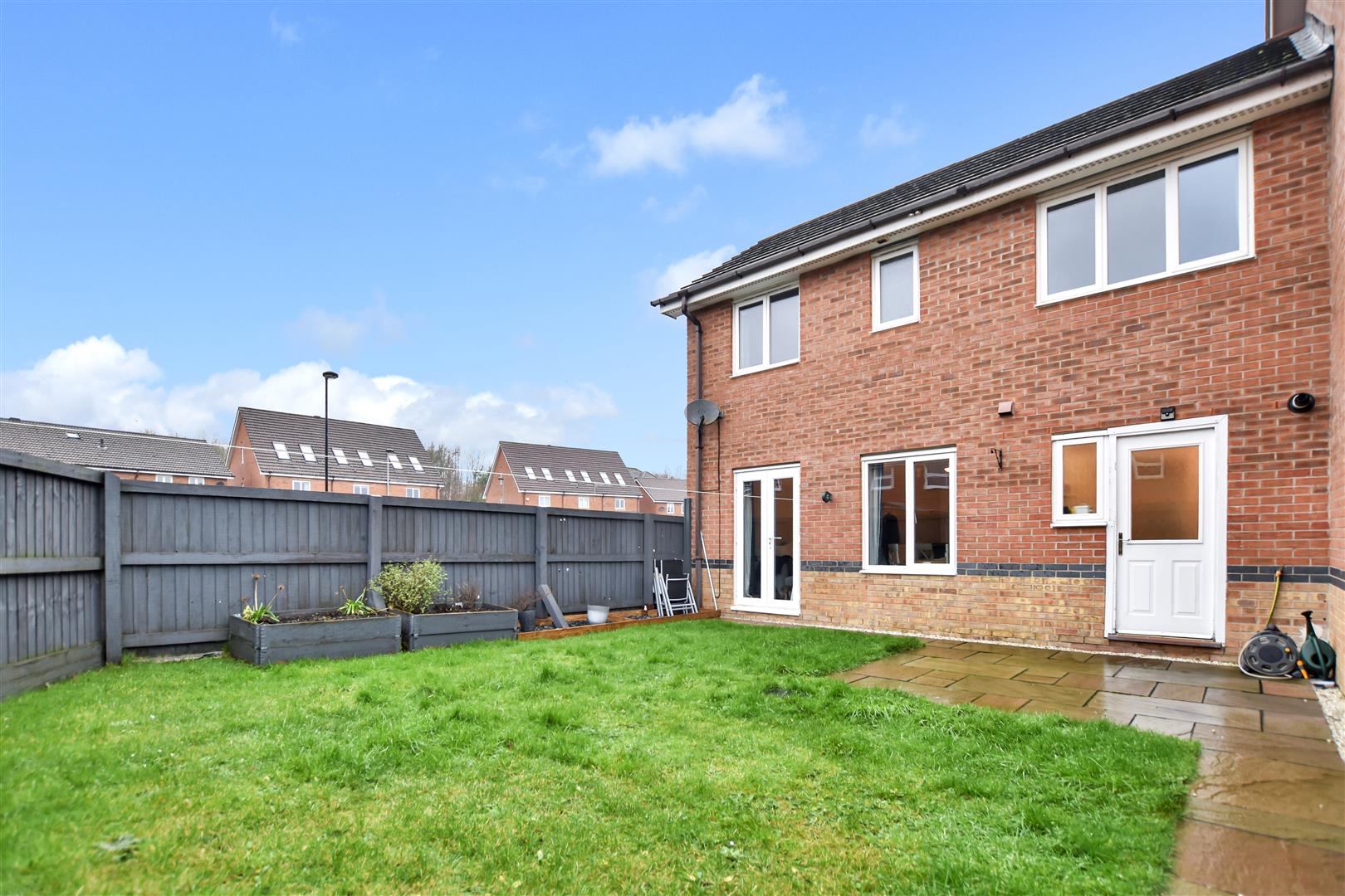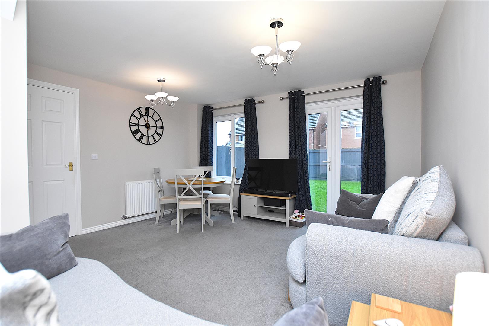 A 3 double bedroom modern mews style house with 3 allocated parking bays and an enclosed rear garden located within this popular development just a short drive to Wrexham city centre and excellent road links to Chester and Shropshire. The accommodation briefly comprises an open fronted porch, part glazed door to hall with stairs to 1st floor landing, cloaks/w.c., lounge with dining area and French doors opening to the rear garden, well appointed stylish fitted kitchen with integrated appliances including an induction hob, double oven, dishwasher etc. The 1st floor landing connects the 3 double bedrooms with the principal bedroom having fitted wardrobes. The bathroom includes a bath with shower over. To the outside, the 3 parking bays adjoin the house and the rear garden includes an Indian stone paved patio for outdoor entertaining with lawned garden beyond all of which is enclosed to provide a safe family environment. Energy Rating – C (77)