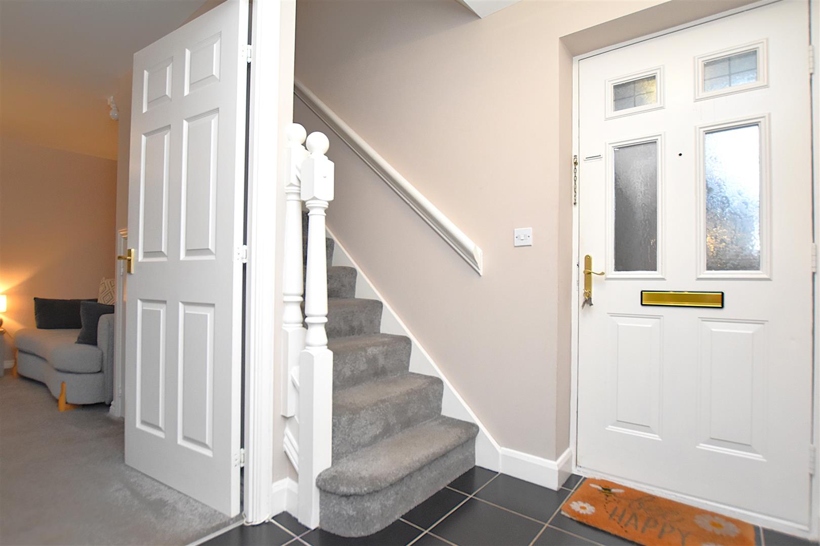 Having stairs off to first floor landing, tiled flooring, radiator, mains wired smoke alarm and six panel doors off.