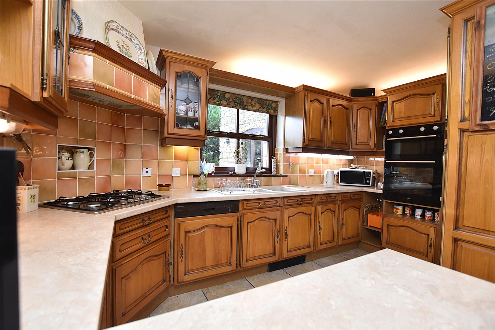The kitchen area is fitted with a range of base and wall units complimented by work surface areas incorporating a 1 1/2 bowl Frankie sink unit with double glazed window above overlooking the rear garden, double oven/grill, five ring gas hob with extractor canopy above, under unit lighting, part tiled walls, integrated dishwasher, space for fridge freezer, tiled flooring which continues through to the breakfast area, two double glazed windows to side and radiator.
