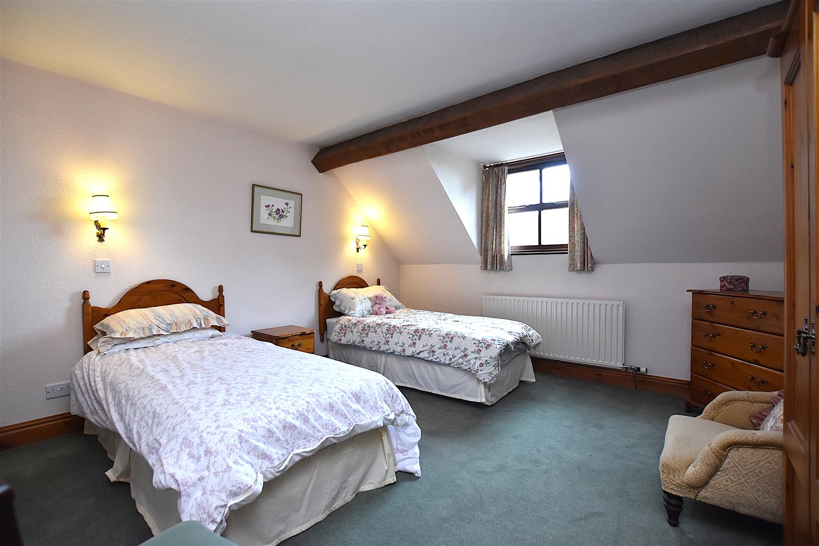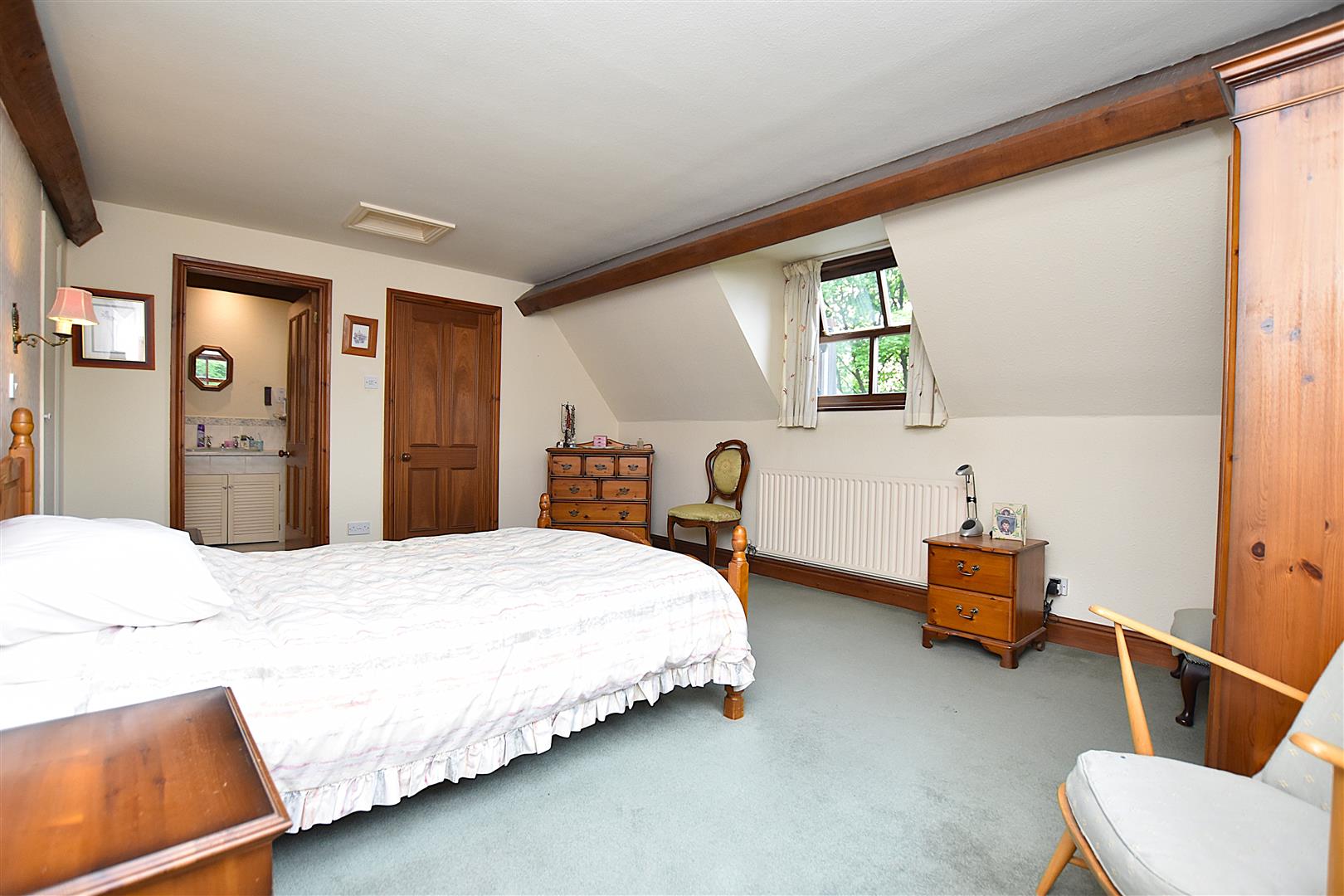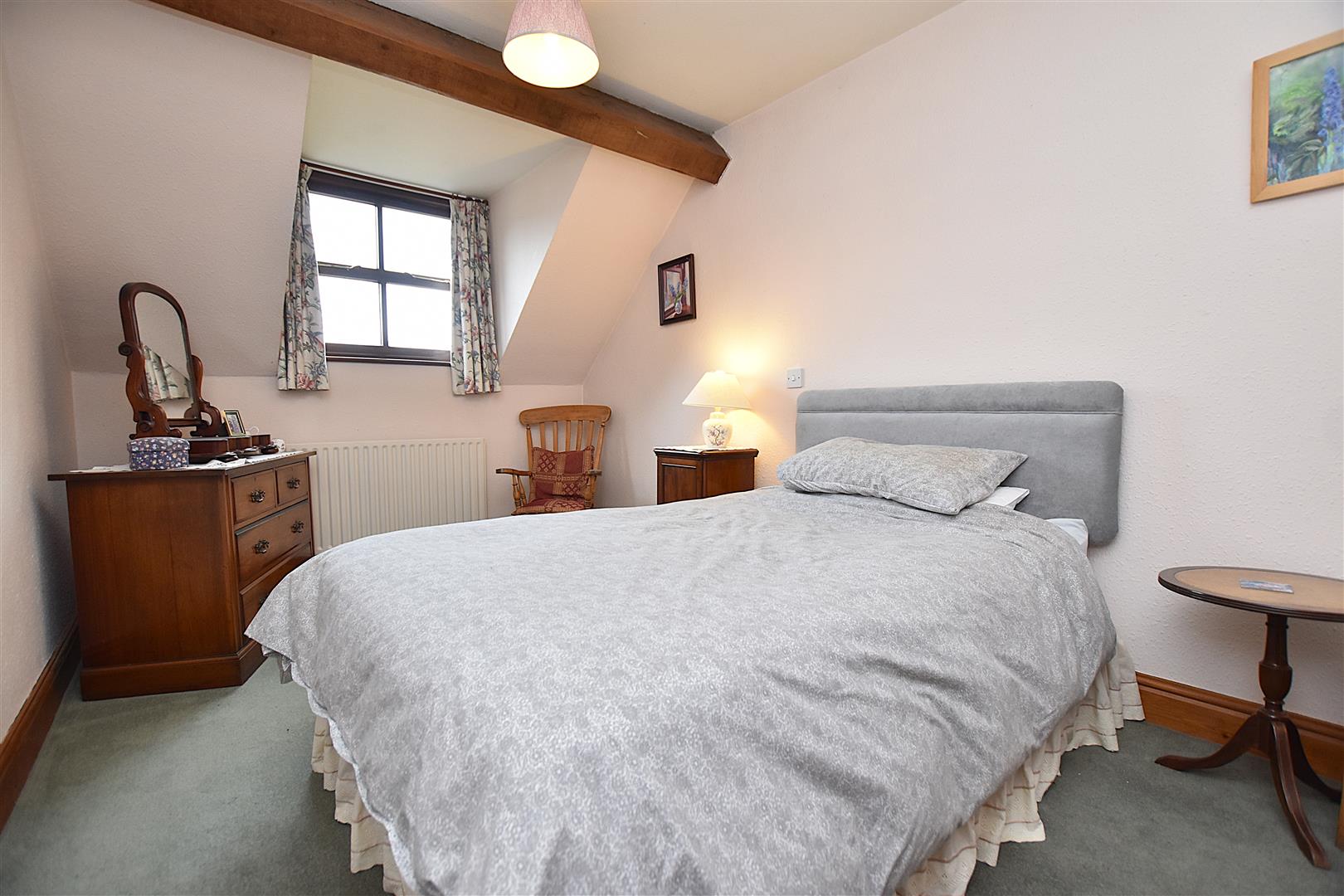 Enjoying a dual aspect with double glazed windows to side and rear, radiator, exposed beams to ceiling, wall light points and two built-in wardrobes with hanging rails and shelving. An internal door opens into: