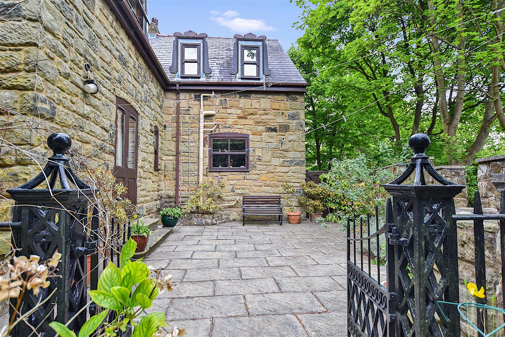 A gated path leads to the rear garden which is a particular feature of the property enjoying a good sized lawned area, stone walled patio with in-built barbeque providing an excellent outdoor entertaining space, established trees, privacy hedging, flowerbeds and an access gate to a further garden area from which to admire the views across the valley towards the Welsh Hills.