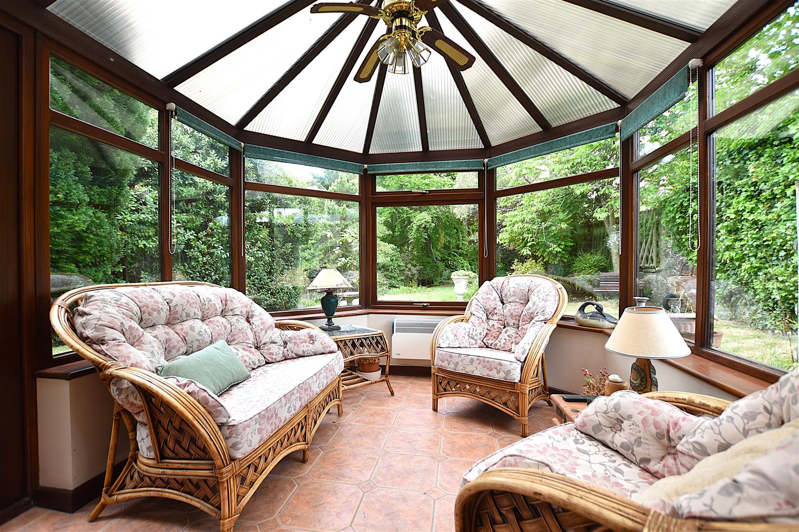 Enjoying a pleasant aspect overlooking the rear garden through double glazed windows on a stone plinth, electric wall heater, tiled floor and double glazed French doors opening to the garden.