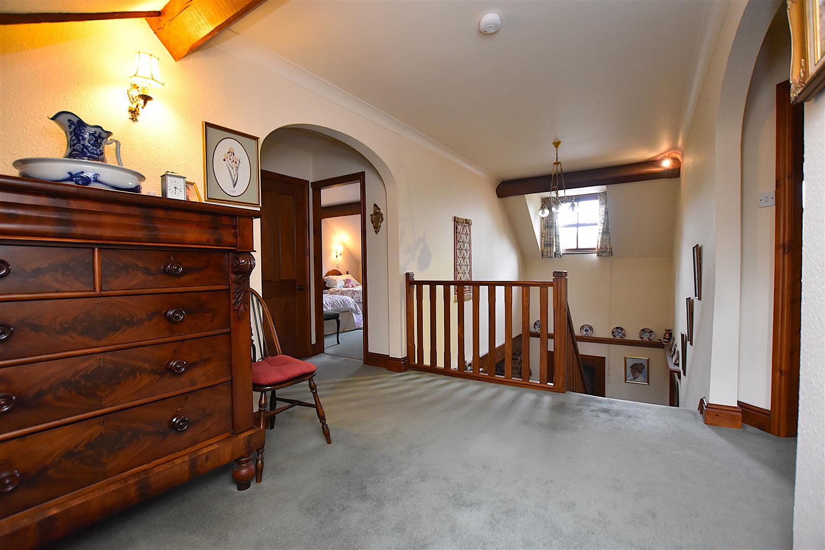 Approached via the staircase from the hallway with gallery over stairwell, double glazed window to rear, exposed beams, two feature arches and good sized airing cupboard housing the hot water cylinder with slatted shelving.
