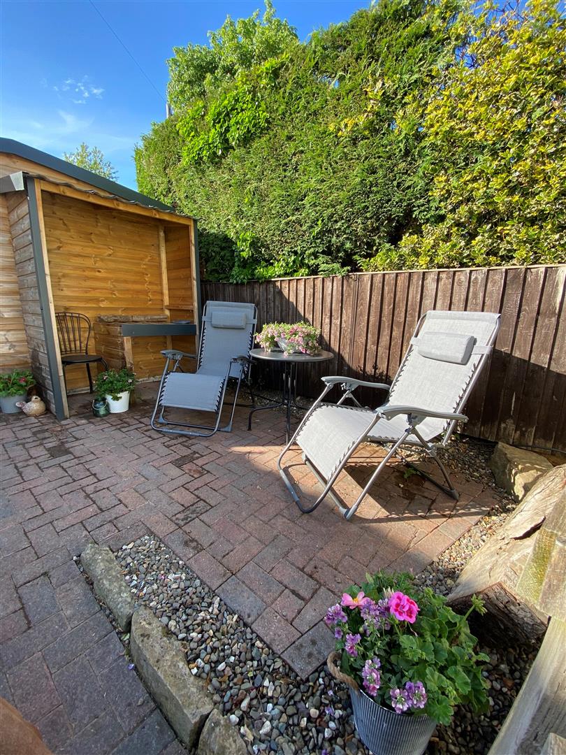 The property is approached along a private driveway with enclosed decorative gravelled front garden alongside previously providing additional parking. To the side of the property is a gated seating/patio area with garden shed having the benefit of power.