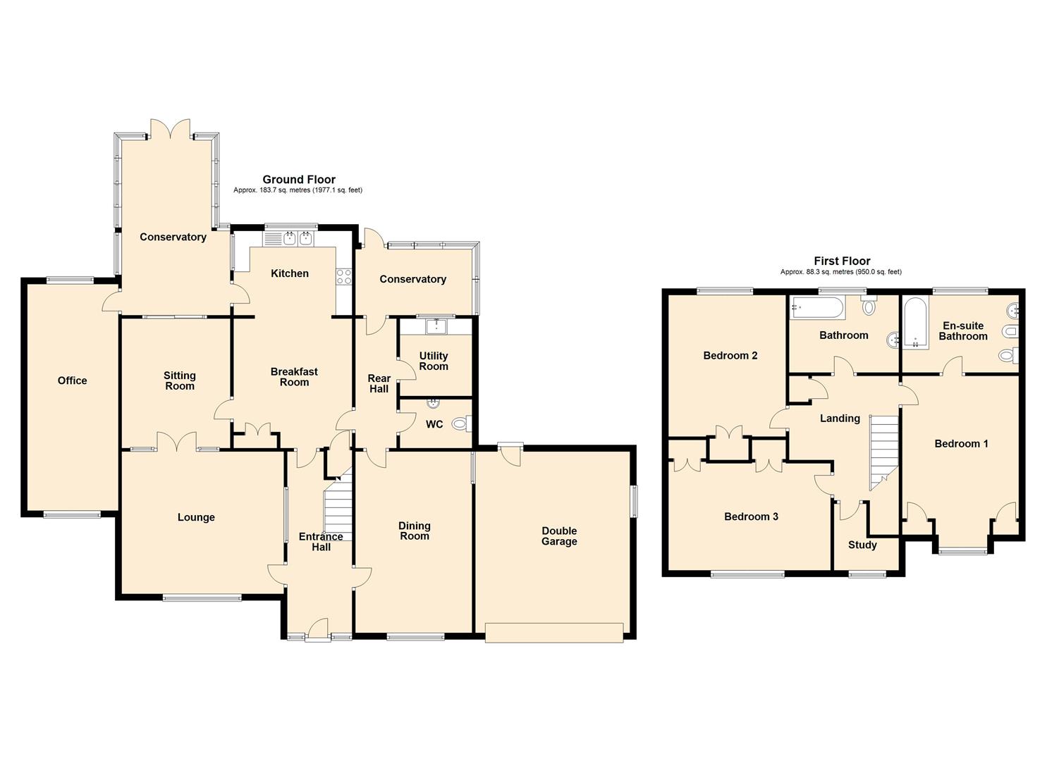 Appointed with a four piece suite of twin grip panelled bath, pedestal wash basin, bidet and low flush w.c.