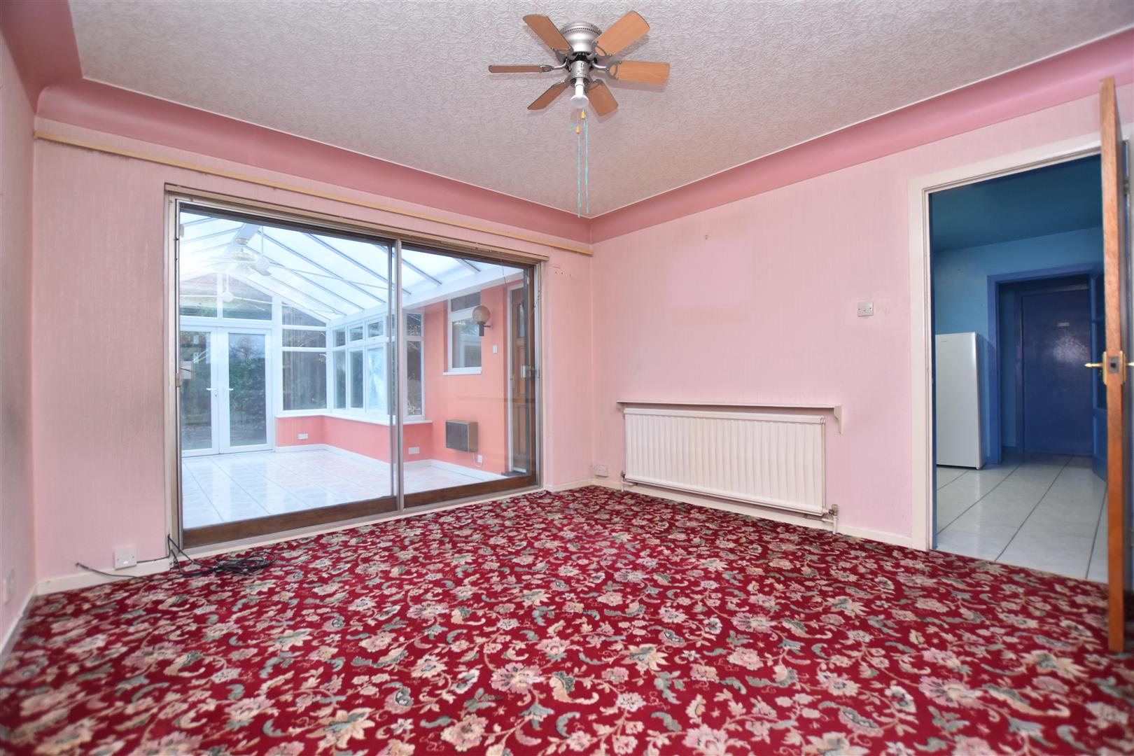 Deep coving to ceiling, radiator, patio doors leading to the conservatory and an internal door opening to: