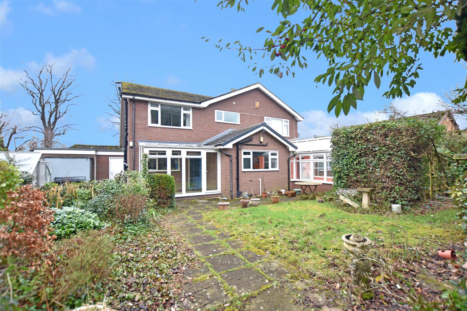 An excellent opportunity to purchase a spacious 4 bedroom 5 reception room detached family home with private gardens, 2 driveways for ample parking and garage located on the fringe of the city centre along a private road having the benefits of an excellent choice of amenities, restaurants and public transport within walking distance together with good road links to Chester and the North West. The well proportioned accommodation requires some upgrading and comprises a central entrance hall with staircase to 1st floor, lounge with open fire and double bi fold doors opening to the family sized dining room which adjoins the spacious kitchen breakfast room, sitting room, 2 conservatories, hobby/games room, utility and cloaks/w.c. The 1st floor landing connects the 4 bedrooms, ( 3 doubles ) 1 with en-suite bathroom and a modern bathroom with walk in shower and bath. To the outside, the drive leads to the garage with electric door, additional driveway and garden area. The private rear garden offers excellent entertaining space to include patio area, lawn, flower beds and established hedging. NO CHAIN. Energy Rating – E (42)