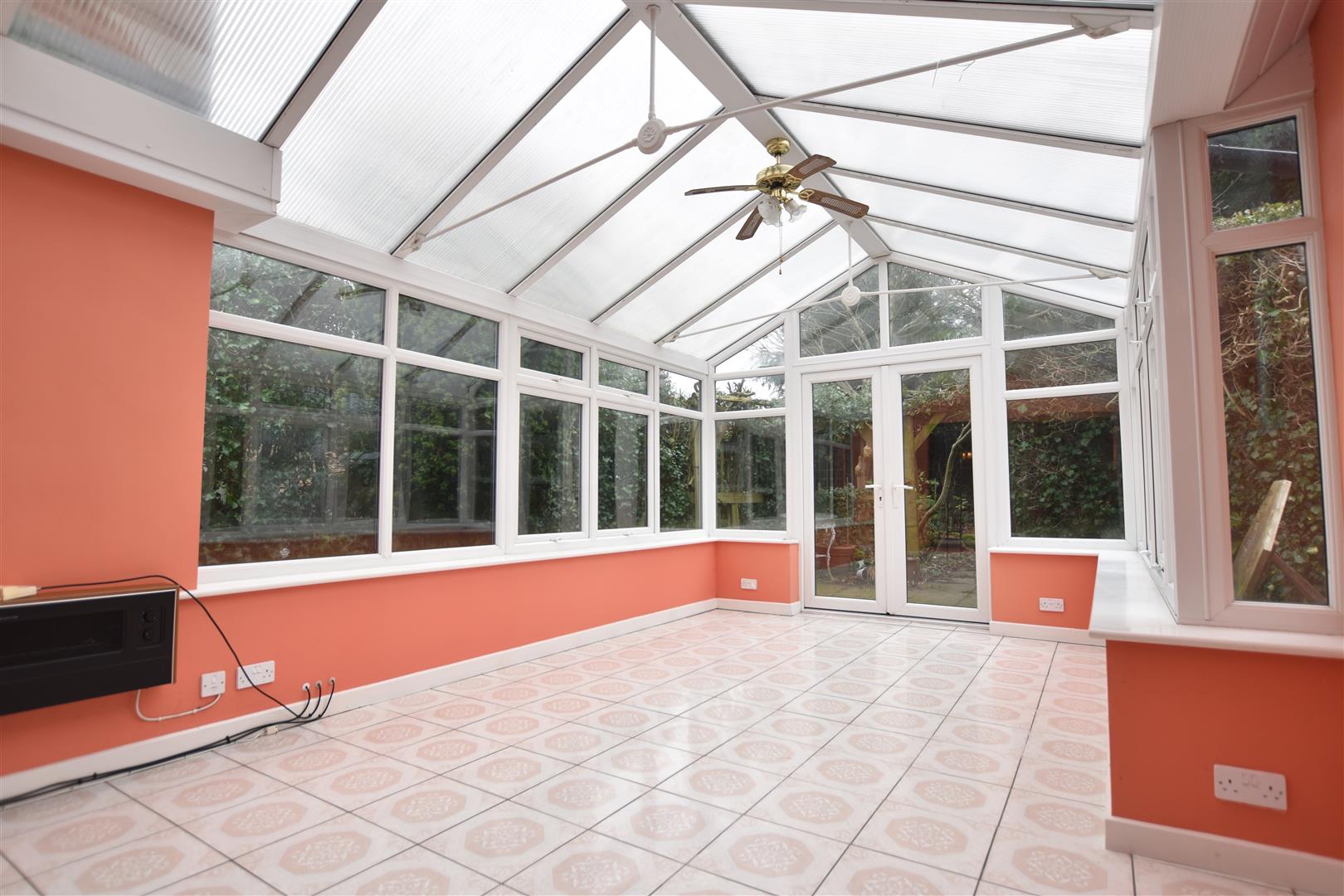 Accessed off the rear hall with upvc double glazed floor to ceiling windows to two sides, French door and tiled flooring.