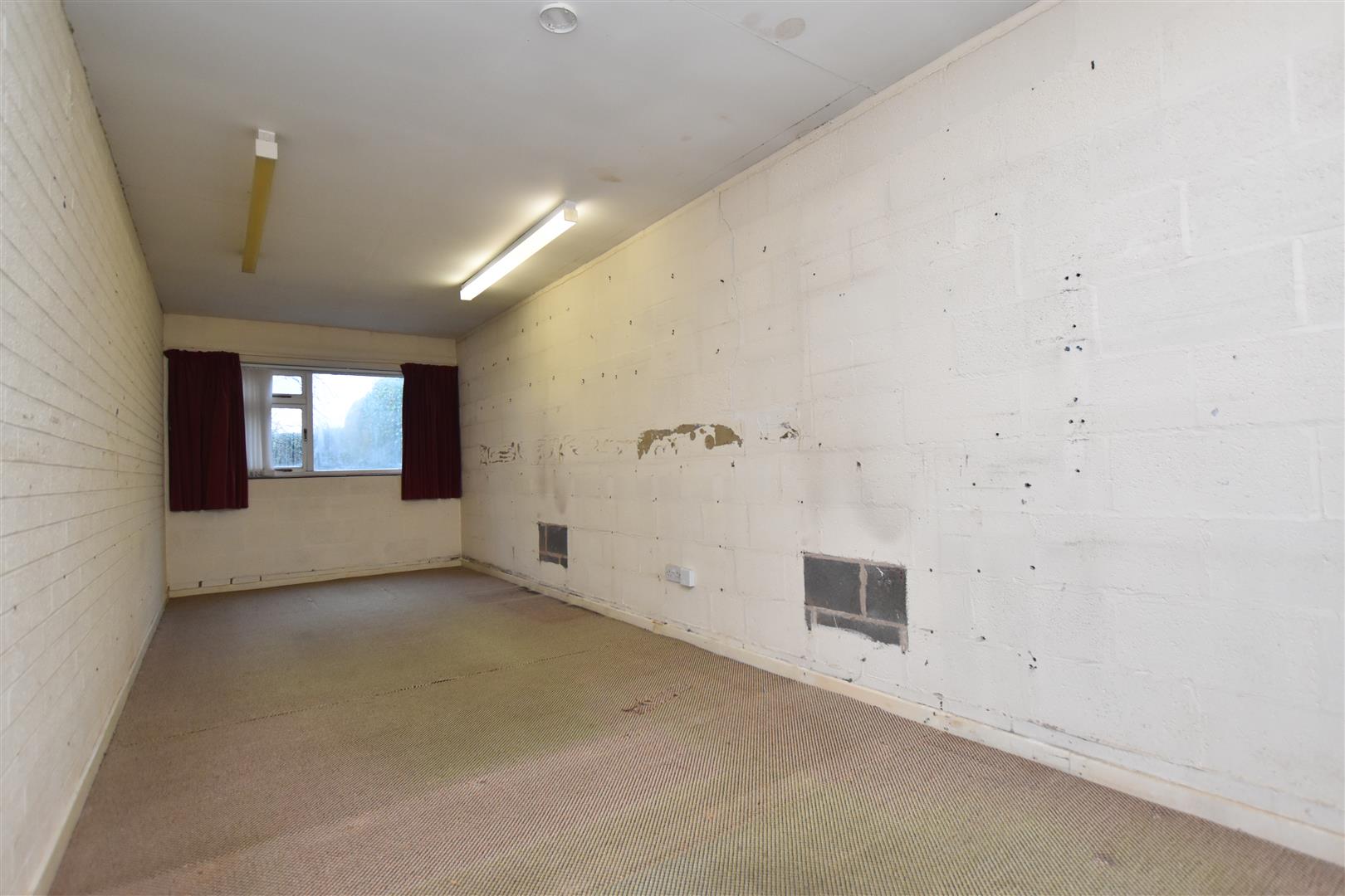 A versatile reception room with lighting, power sockets and windows to front and rear.