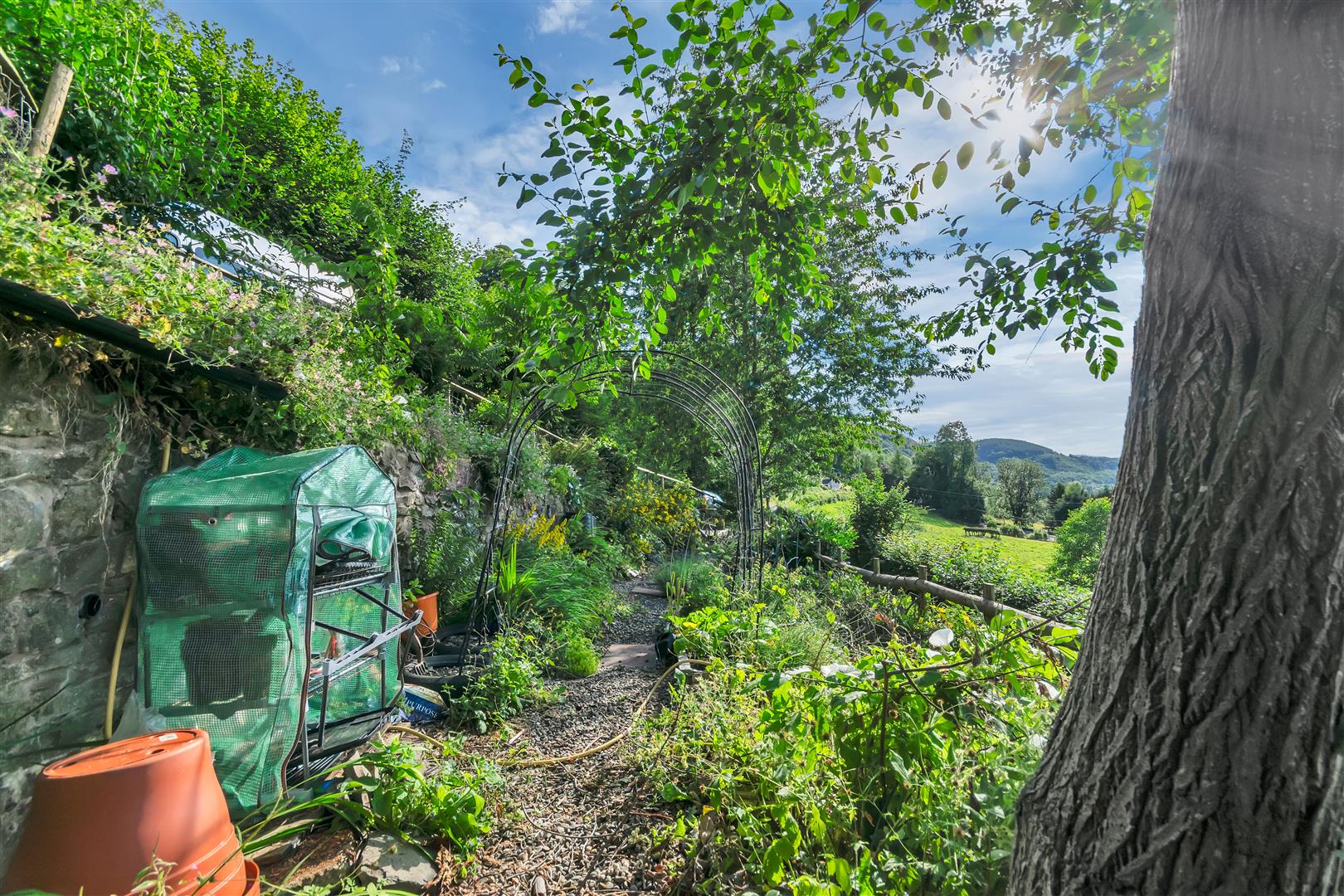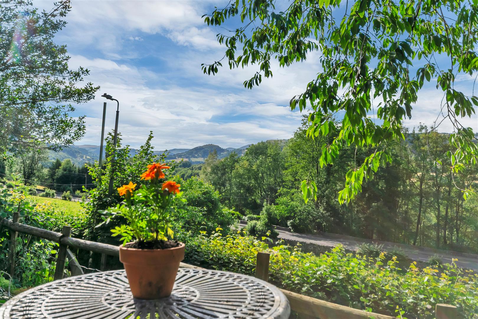 A long private driveway to the side of the house leads to the parking. Tiered garden extends mainly to the front of the cottage and are well stocked with a variety of plants and shrubs. A gated path leads up to the entrance door and path continues to a covered patio area from which to enjoy the impressive views. A further gravelled patio/seating area with stocked borders and access to driveway, log store.