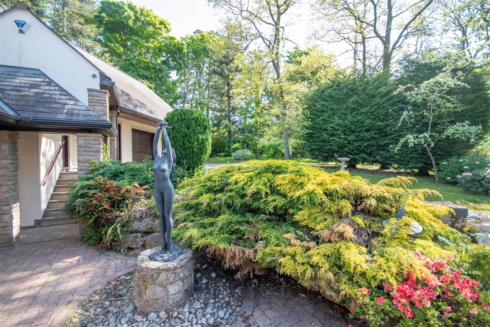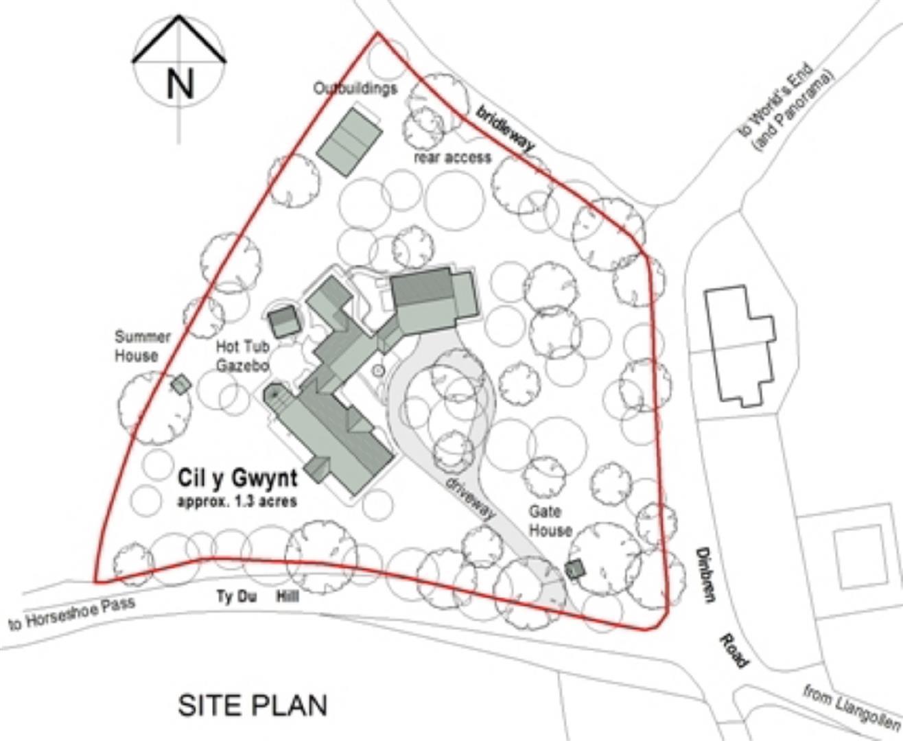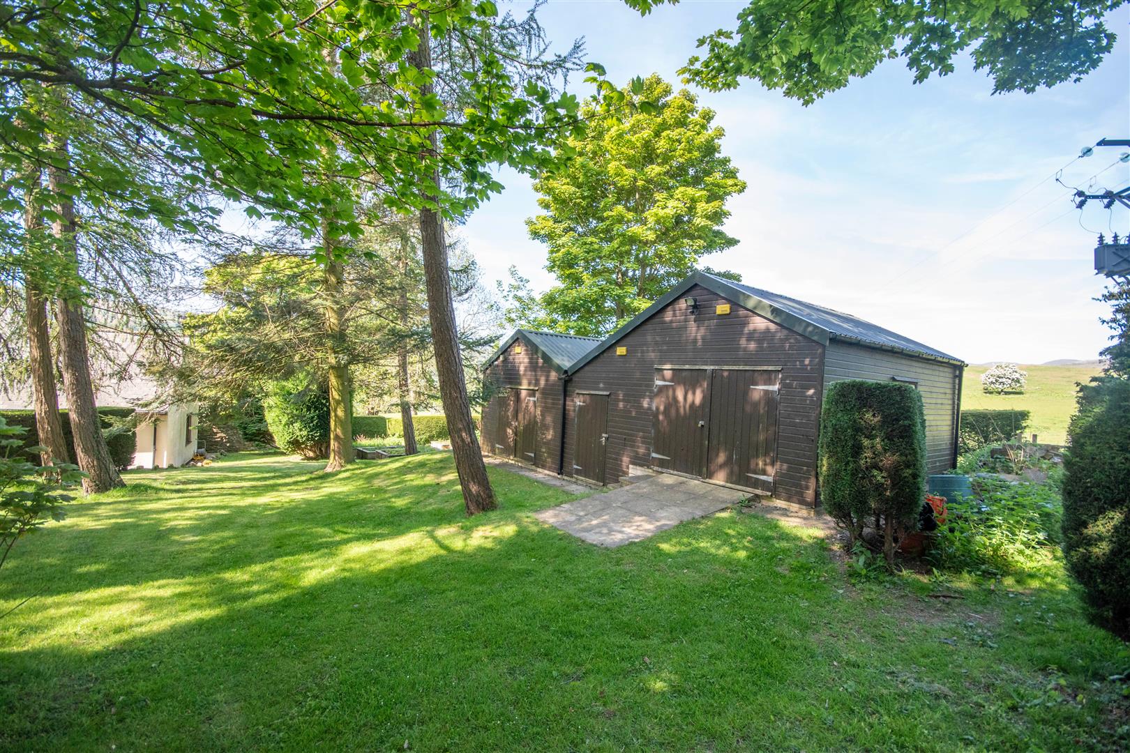 The property is accessed via electric gates set between stone pillars and adjoining a Gate House Folly. A tarmac driveway with teardrop turnaround leads to the house and garages. Cil y Gwynt has most attractive landscaped grounds which have been beautifully maintained. On three sides the garden is laid to lawn and includes a diverse variety of shrubs and trees. A delightful rockery with waterfall and fish pond sits below the house and above the main lawn. Thoughtfully planned paved terraces surround the house providing pleasant sitting and spaces for entertaining at any time of day. To the rear is a backdrop of mature trees providing a delightful setting. There are dramatic views over the surrounding countryside on all sides. A large bespoke timber outbuilding contains three separate storage sheds. The Summerhouse is used for storing outdoor furniture, slate roofed Gazebo. A metal farm gate provides occasional access onto a public bridleway at the rear of the property.