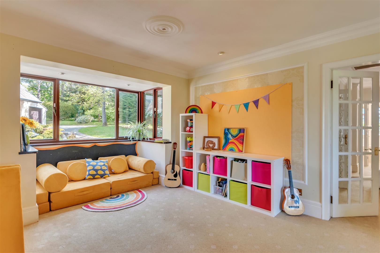 Cil y Gwynt provides a rare opportunity to acquire a substantial family residence in an accessible position and enjoying truly magnificent views. Incorporating a variety of luxurious features the house also provides further development potential in the form of a loft area above the main house presently accessed by an external stair which is suitable for additional bedroom accommodation or other uses. The accommodation briefly comprises large lounge with views over the landscaped garden, conservatory, kitchen/breakfast room, dining room, play room/snug, master bedroom with luxury en suite with sauna, dressing area and walk in wardrobe. Further three bedrooms, shower room and bathroom. Externally private gates open into the sweeping drive leading to entrance and the three car garage block with workshop and self contained annexe above. Extensive wrap around grounds, additional outbuildings/store.