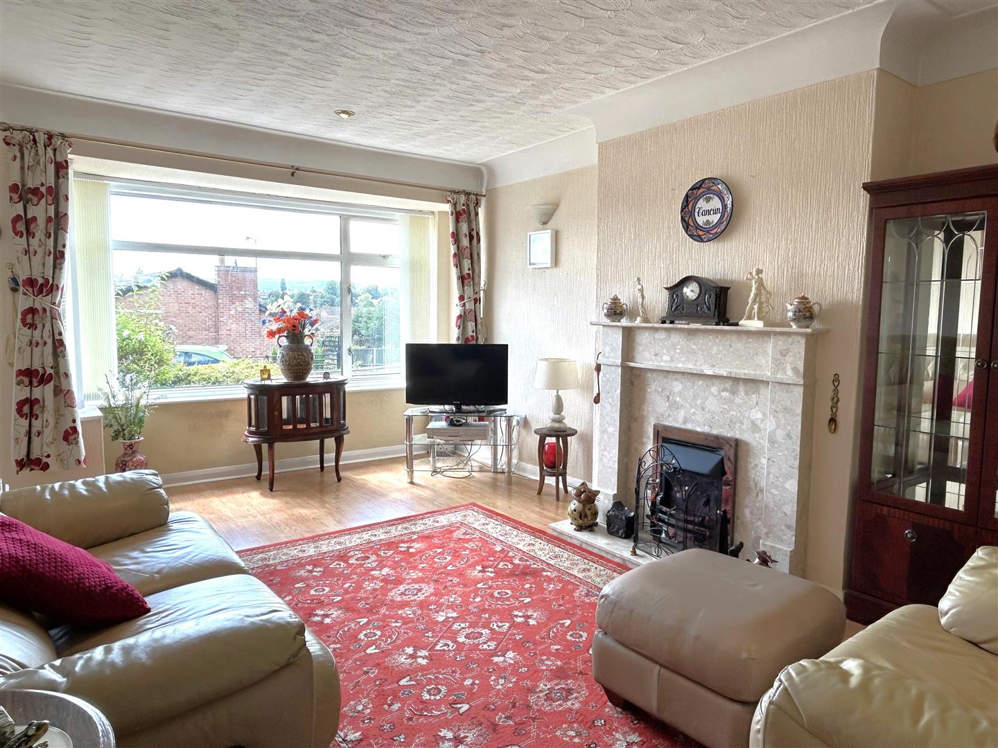 A good sized reception room enjoying a good degree of natural light through a large metal framed double glazed window to front, radiator, coving to ceiling, electric fire within marble surround, laminate flooring