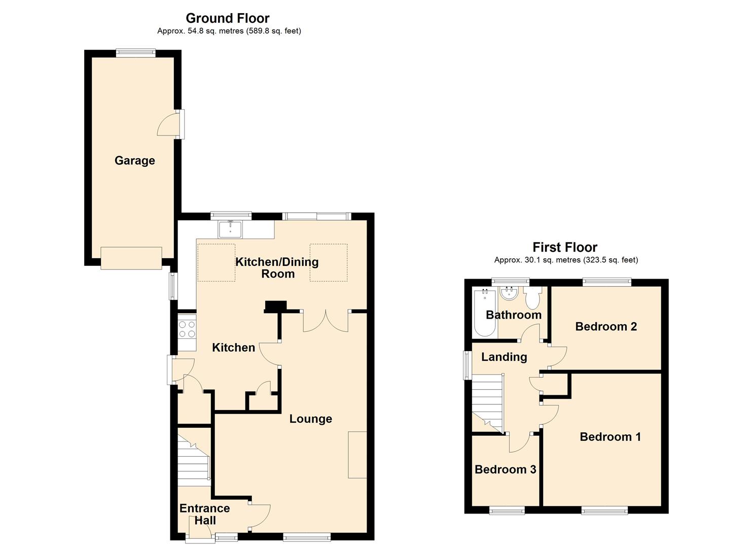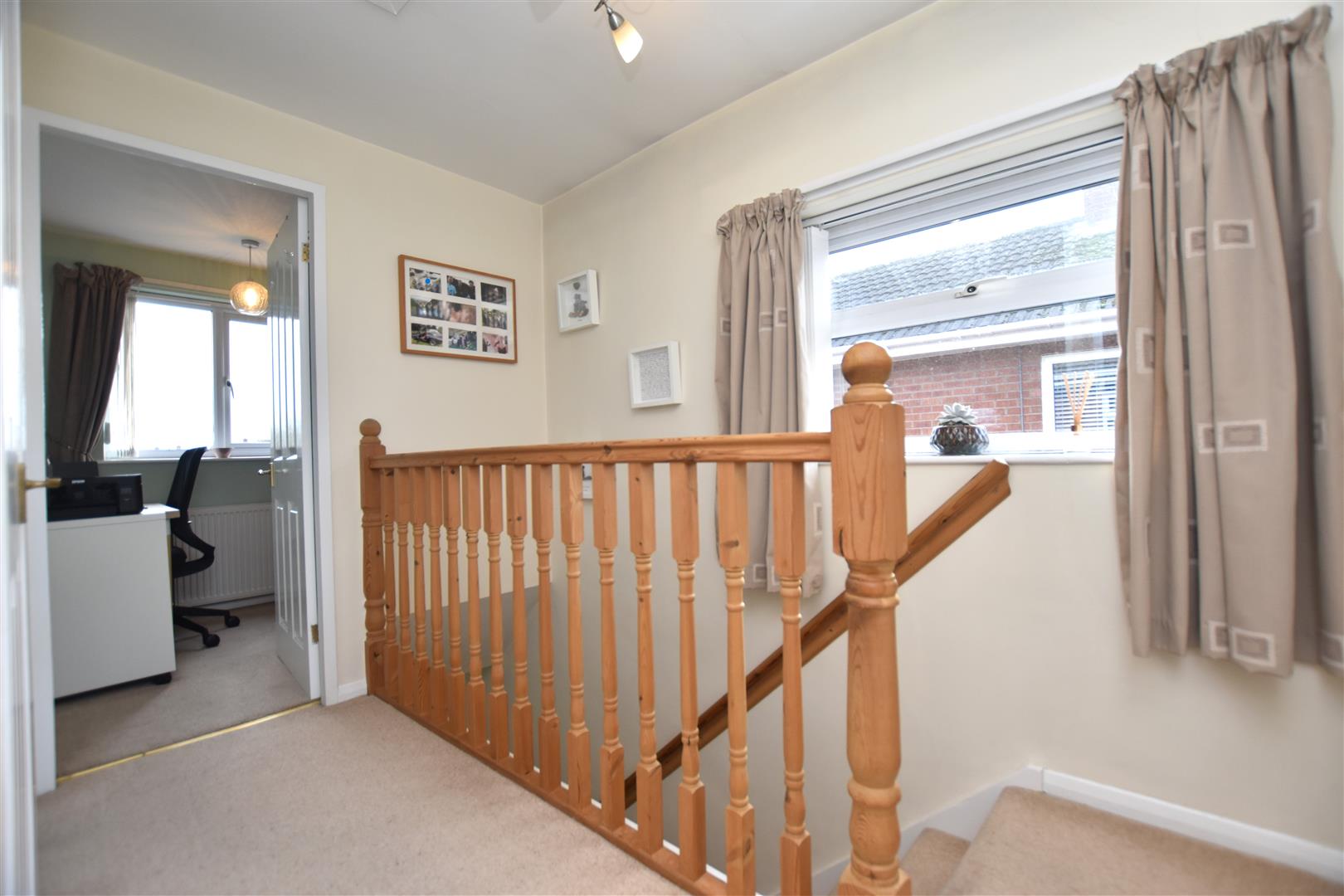 With gallery over stairwell, upvc double glazed window, ceiling hatch to roof space, four panel white woodgrain effect doors off to all rooms and storage cupboard.