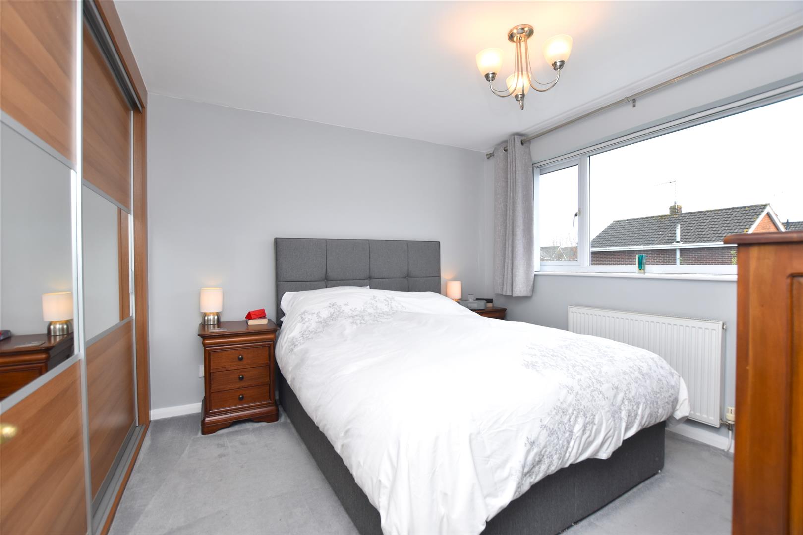 Upvc double glazed window to front, sliding door fitted wardrobes and radiator.