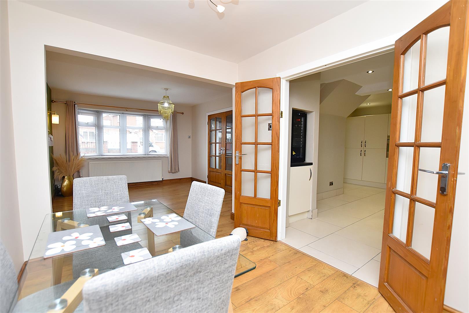 A superb addition to this family home providing a light and airy reception room with raised ceiling incorporating 3 velux roof light windows and inset spotlights, Upvc double glazed windows overlooking the rear garden, French doors with perfect fit blinds, vertical radiator and wood effect flooring.