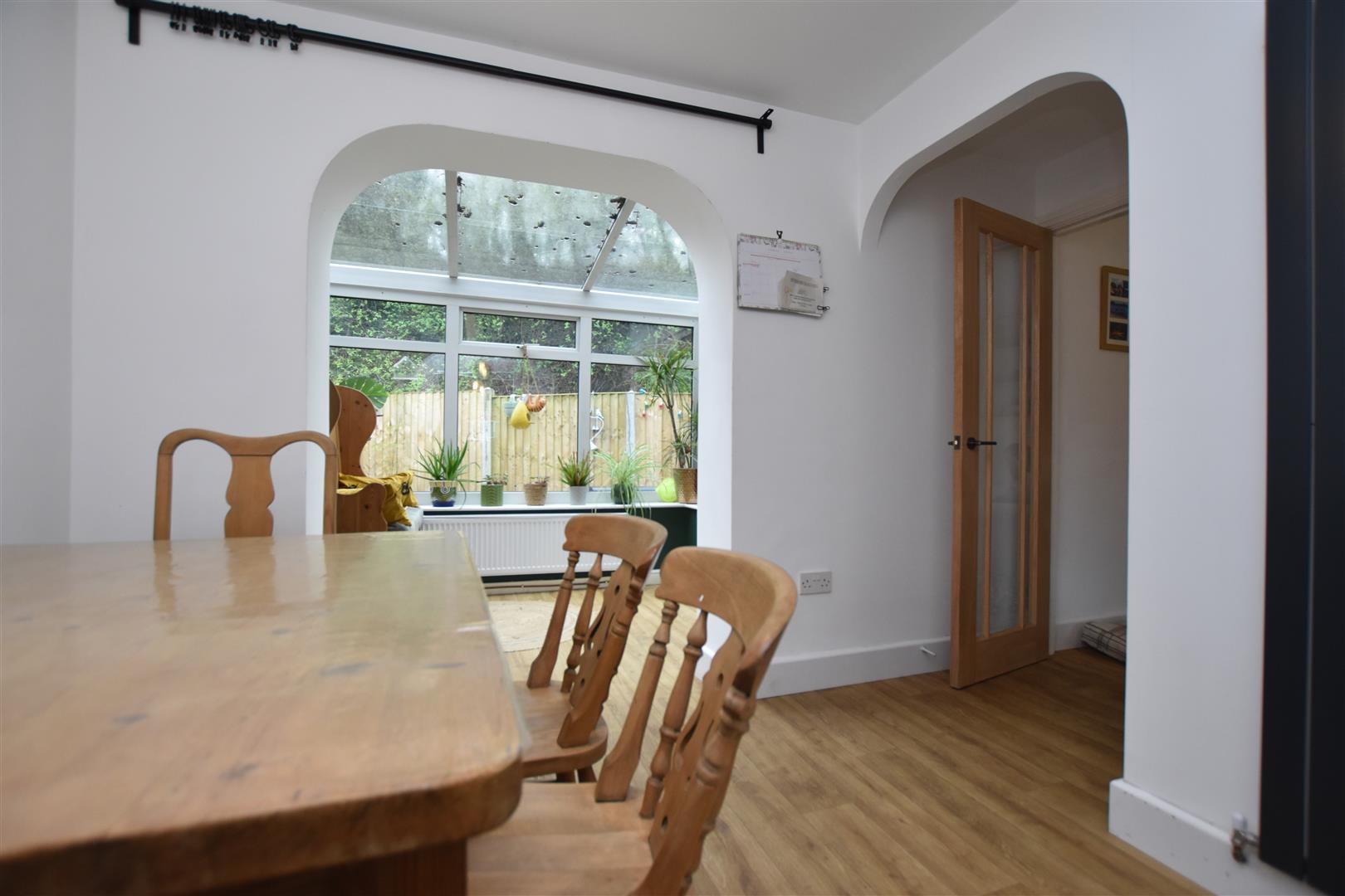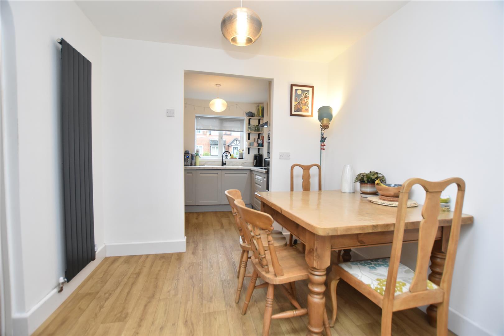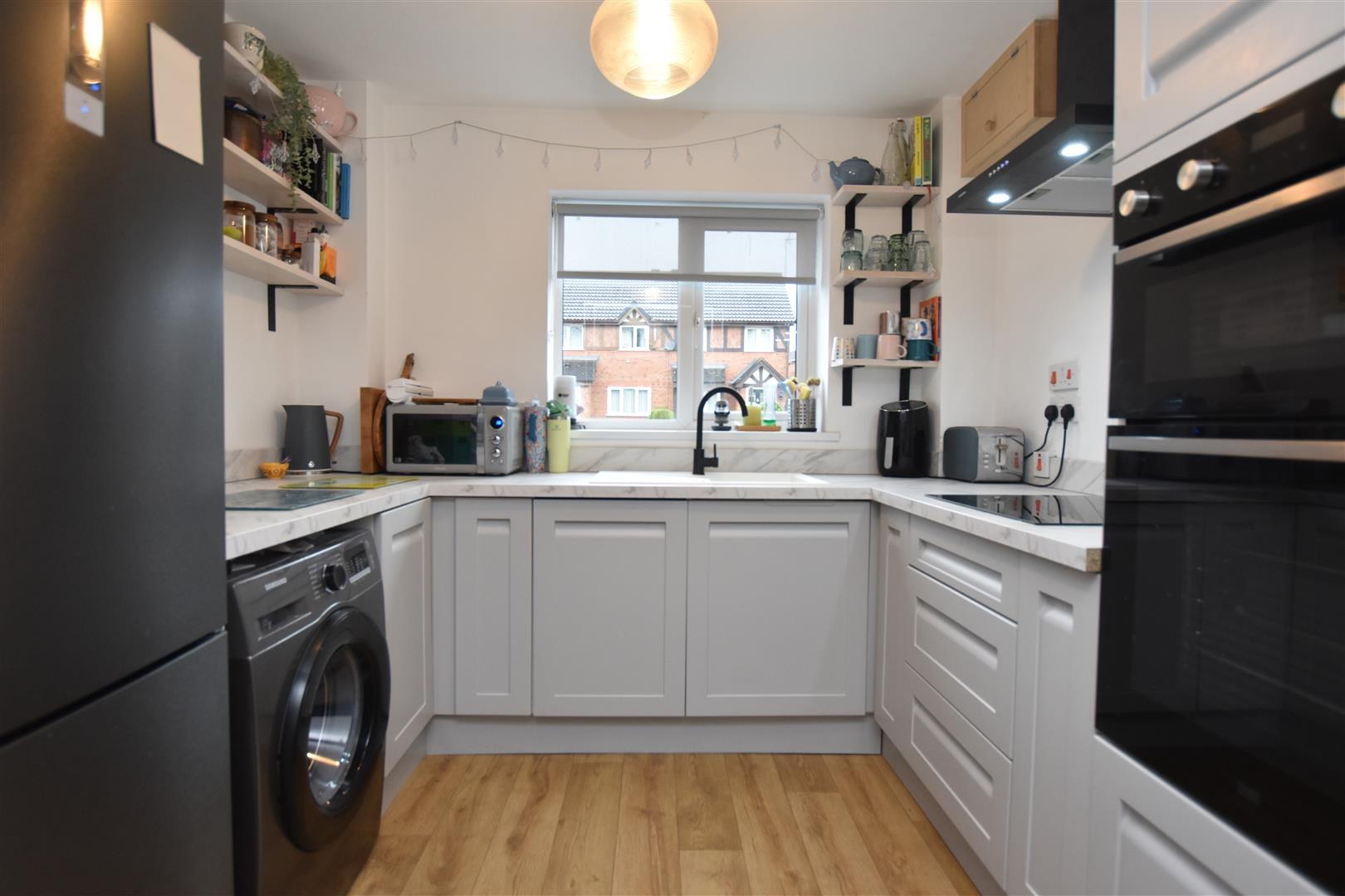 Having an open aspect from the dining room and appointed in 2021 with a stylish grey fronted range of base and wall cupboards complimented by work surface areas with matching upstands incorporating a single drainer sink unit with black mixer tap and upvc double glazed window above, four ring electric hob with black extractor hood above, double oven/grill, plumbing for washing machine, integrated dishwasher and space for fridge freezer.