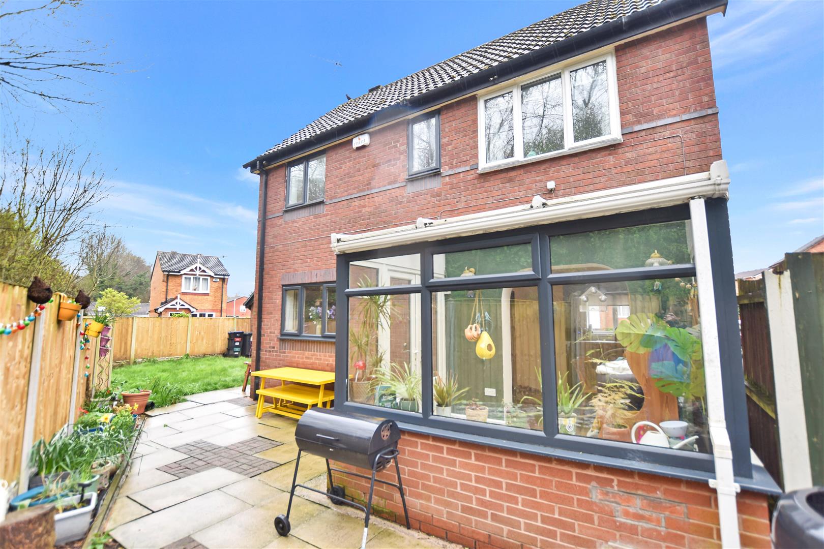 A well presented 3 bedroom detached house with detached brick built garage and conservatory located in this popular residential development on the fringe of the city centre and yet within walking distance of picturesque countryside, supermarkets, schools and excellent road links. The accommodation has the benefit of gas fired central heating via a combi boiler, Upvc double glazing, Oak veneer internal doors and briefly comprises an enclosed entrance porch, hall with staircase to 1st floor landing, well proportioned lounge with provision for gas fire, recently appointed stylish grey fitted kitchen with integrated dishwasher, dining room and conservatory. The 1st floor landing connects the 3 bedrooms, the principal bedroom having a walk in wardrobe, and a modern family shower room. To the outside, a private drive leads to the garage and gated path to the side lawned garden that enjoys a good degree of privacy and provides entertaining space for children, paved patio for BBQ’s, all of which is enclosed to provide a safe family environment. Energy Rating – D (66)