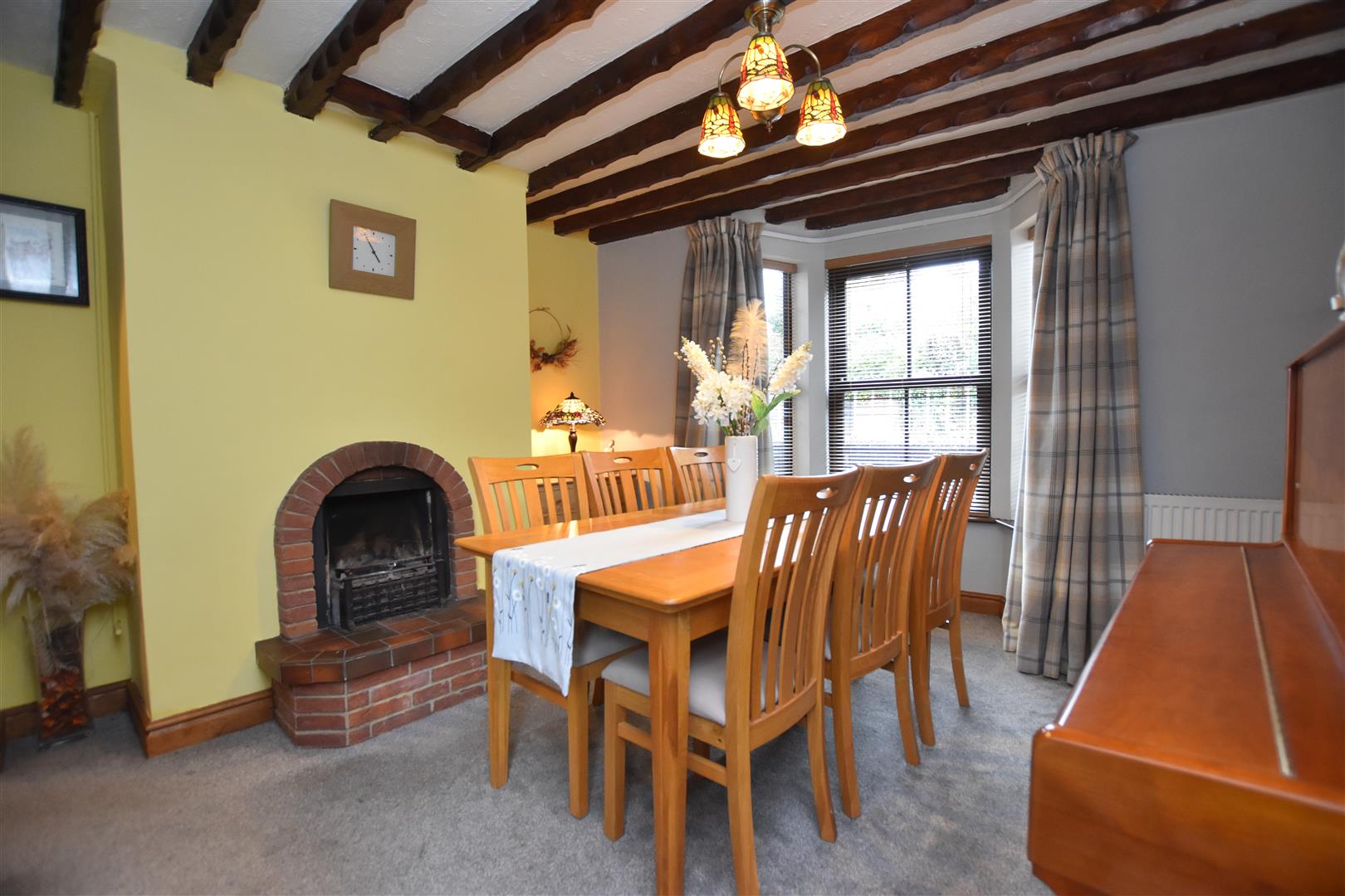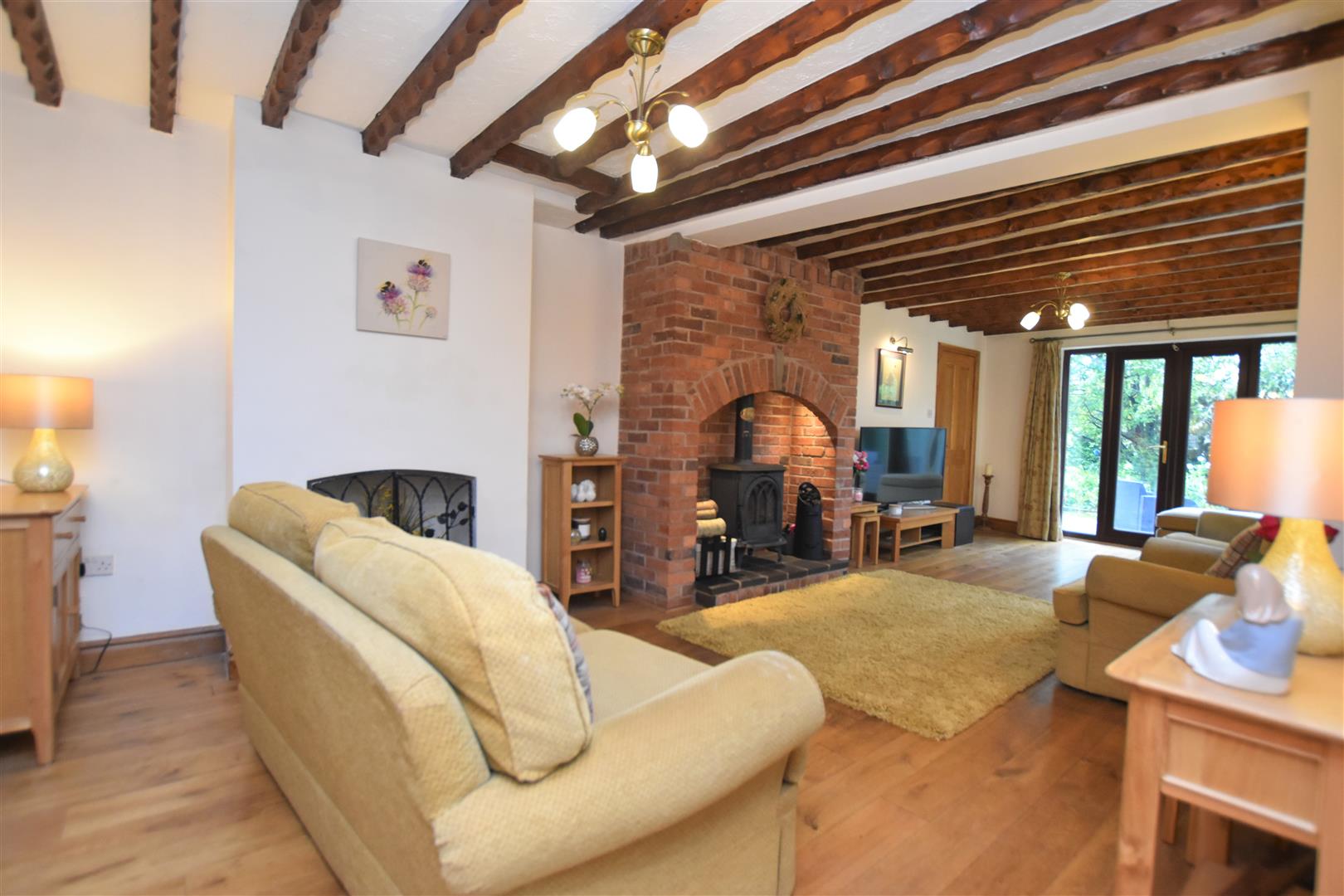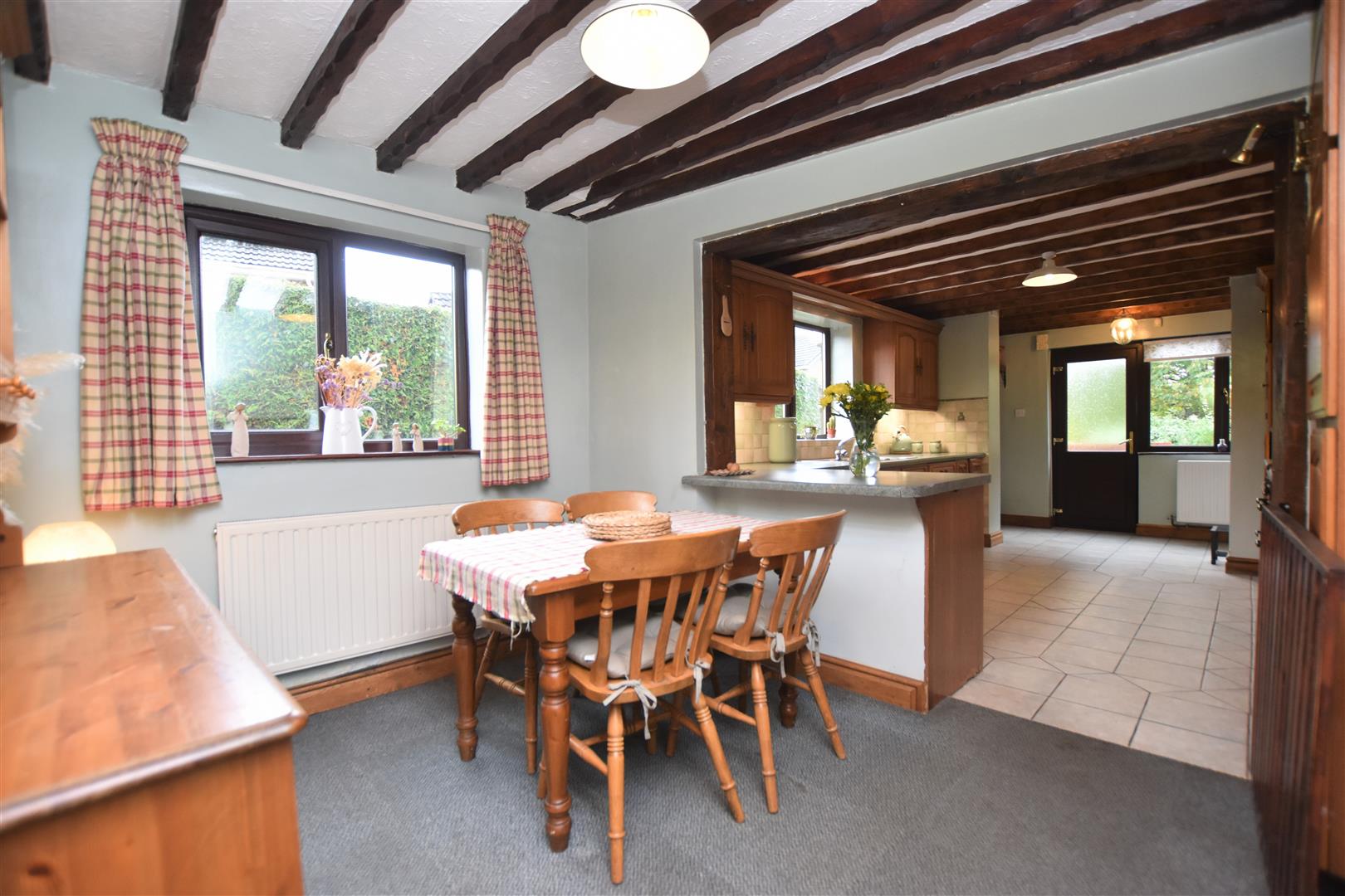 A sociable entertaining space with the kitchen area fitted with a range of base and wall units with ample work surface areas incorporating a stainless steel 1 1/2 bowl sink unit with mixer tap and upvc double glazed window above, space for cooker with extractor hood above, integrated fridge, plumbing for washing machine, plumbing for dishwasher, display cabinets, under unit lighting, tiled flooring, coat hanging space, radiator, upvc double glazed window and upvc part glazed external door leading to the rear garden. The breakfast area includes exposed brick former chimney breast with gas point and timber mantel, upvc double glazed window to side, radiator and exposed beams to ceiling.