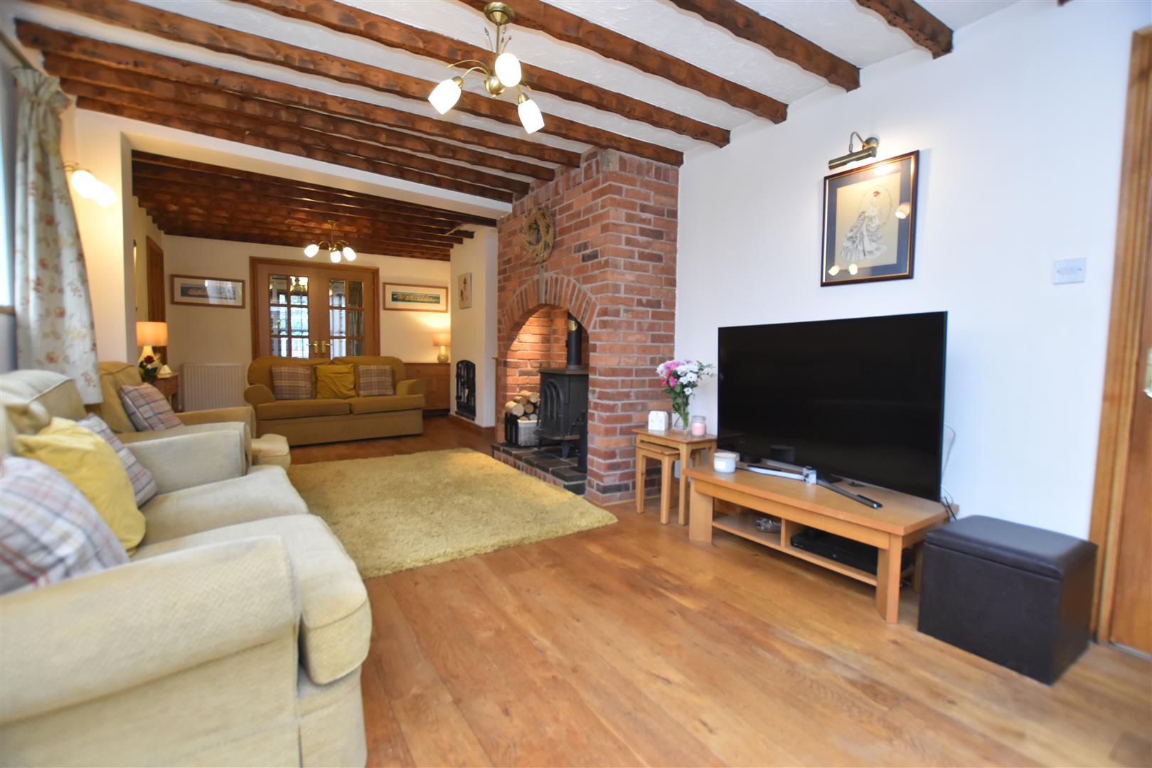 Upvc double glazed bay window to front, radiator, exposed beams to ceiling, chimney breast with open fire and tiled hearth, upvc double glazed window to side and stairs to first floor landing.