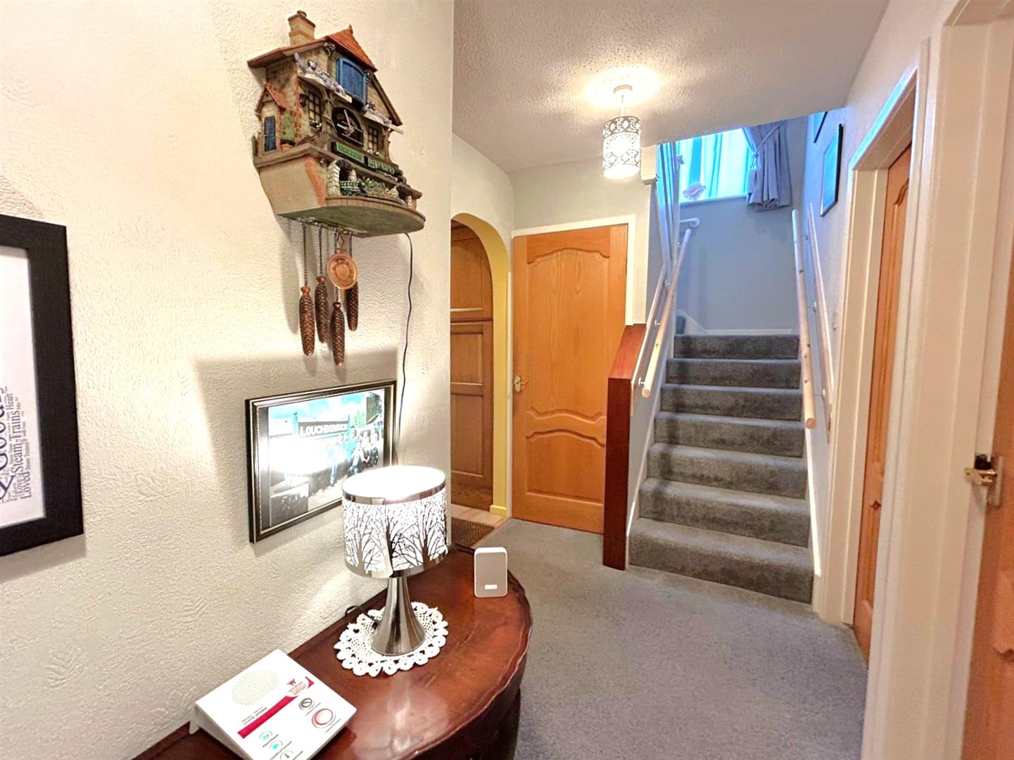With staircase to first floor landing, radiator, four internal doors and useful understairs storage cupboard.