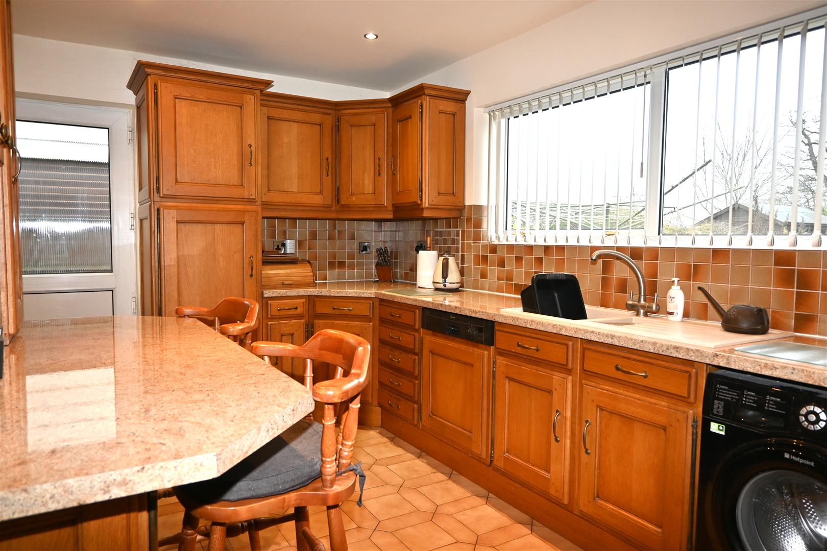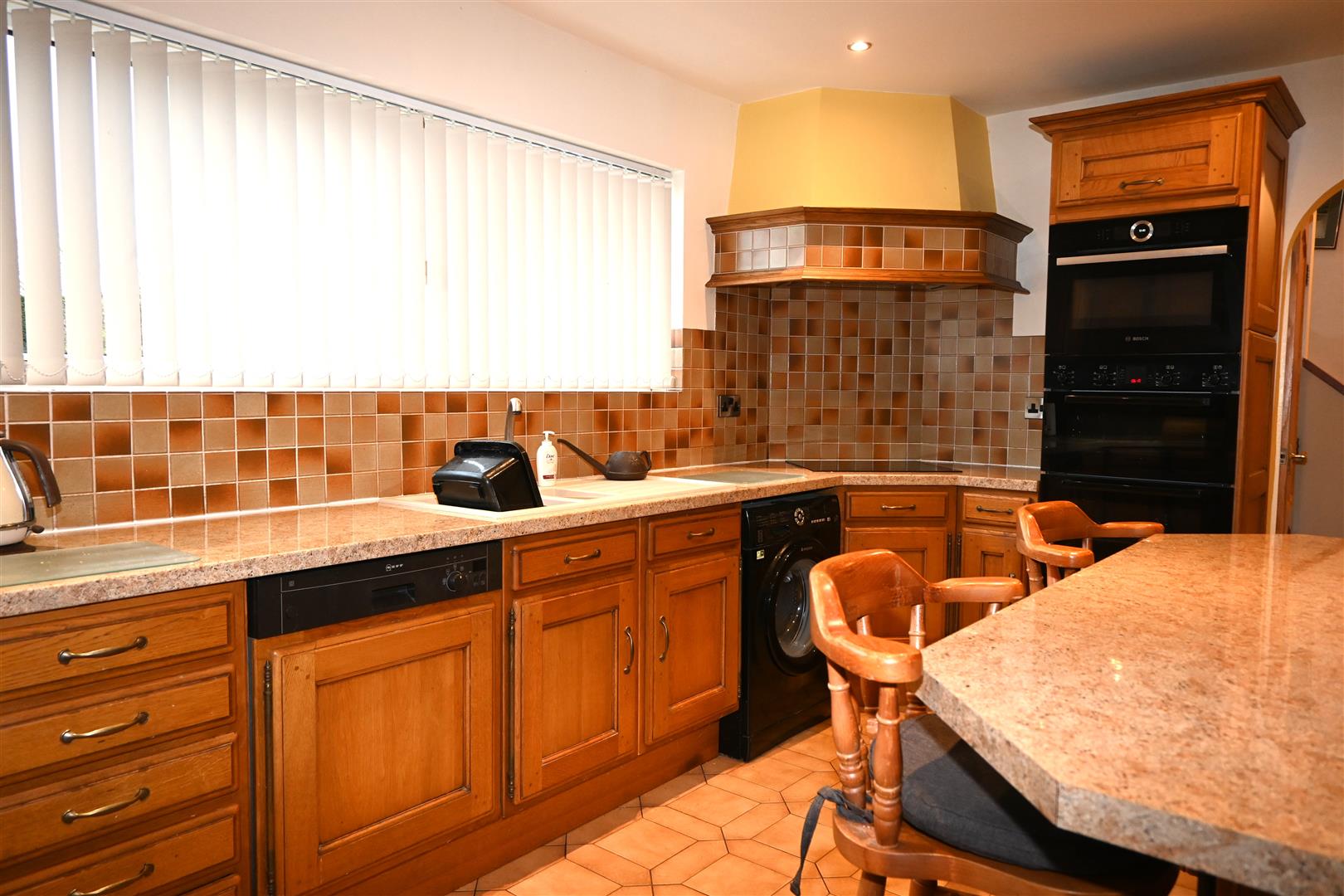 Fitted with a range of base and wall cupboards with inset sink unit with mixer tap and upvc double glazed window above overlooking the rear garden. Benefits from integrated dishwasher, fridge/freezer, induction hob and Bosch oven/grill. Additionally there is tiled flooring, inset ceiling spotlights, part tiled walls, upvc part glazed external door.