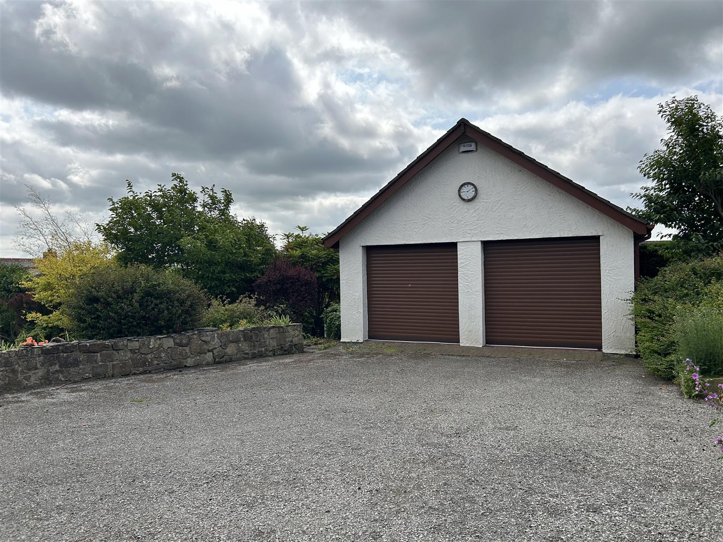 Double garage/workshop with electric roller shutter doors, side personal door, lighting and power sockets.