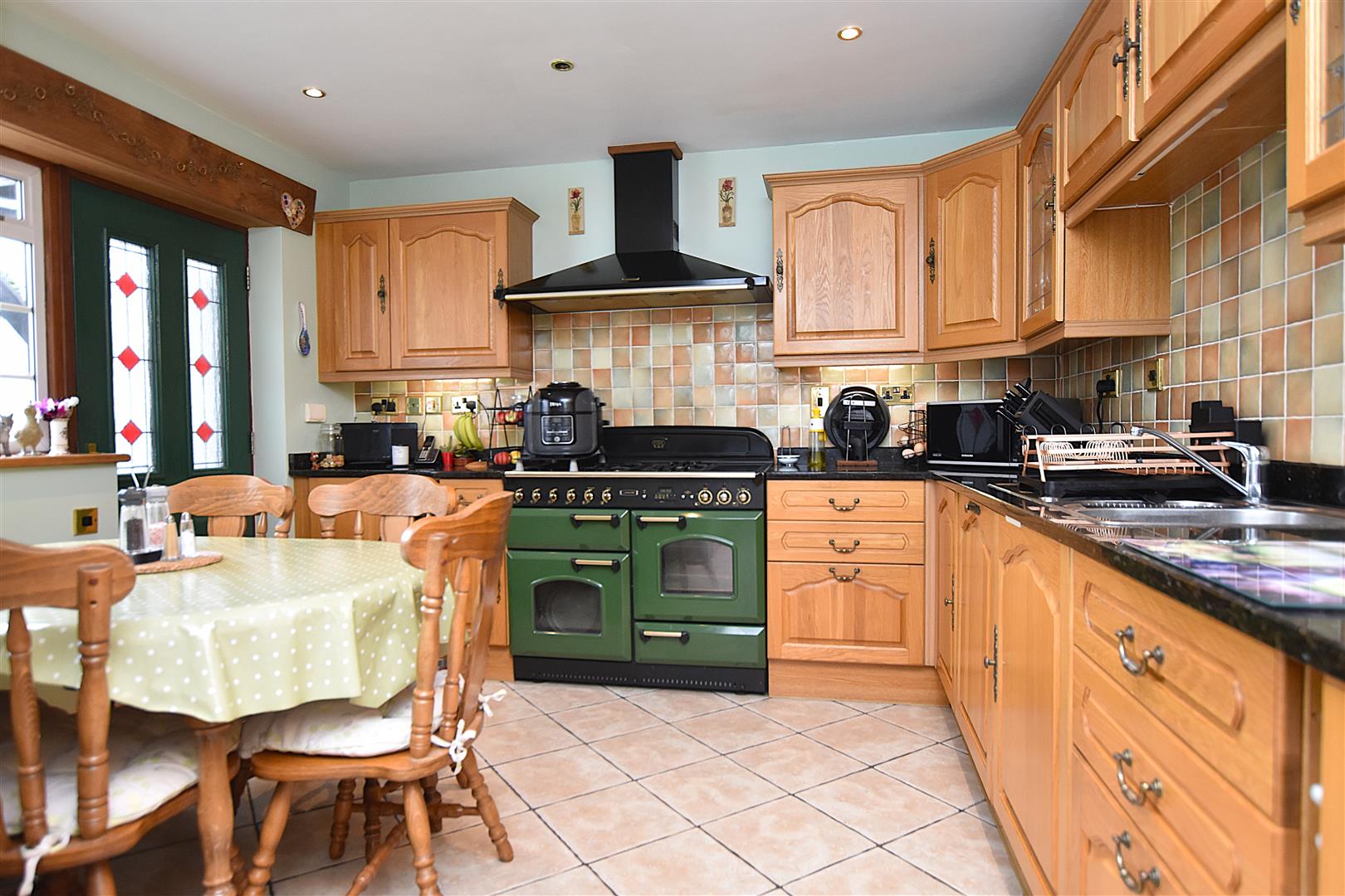 Appointed with an oak fronted range of base and wall units complimented by granite work surface areas incorporating a 1 1/2 bowl stainless steel single drainer sink unit with mixer tap, 'Leisure' Range cooker with five burner gas hob and warming plate, matching 'Leisure' extractor hood above, part tiled walls, integrated dishwasher, tiled flooring, upvc double glazed window, built-in storage, radiator and composite part glazed door to the courtyard.
