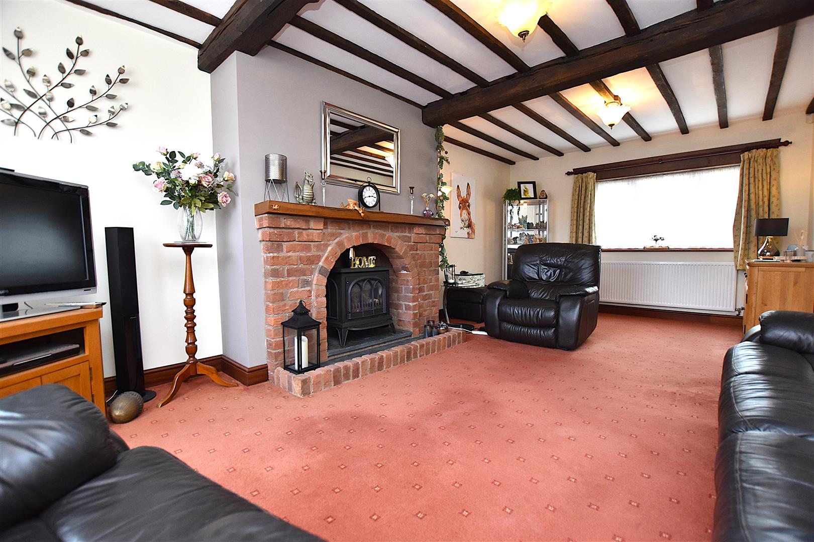 Featuring a bay window to front with deep sill and storage cupboard below, upvc double glazed window to rear, two radiators, exposed beams to ceiling, brick fireplace with inset gas log effect stove on a slate hearth with timber mantel.
