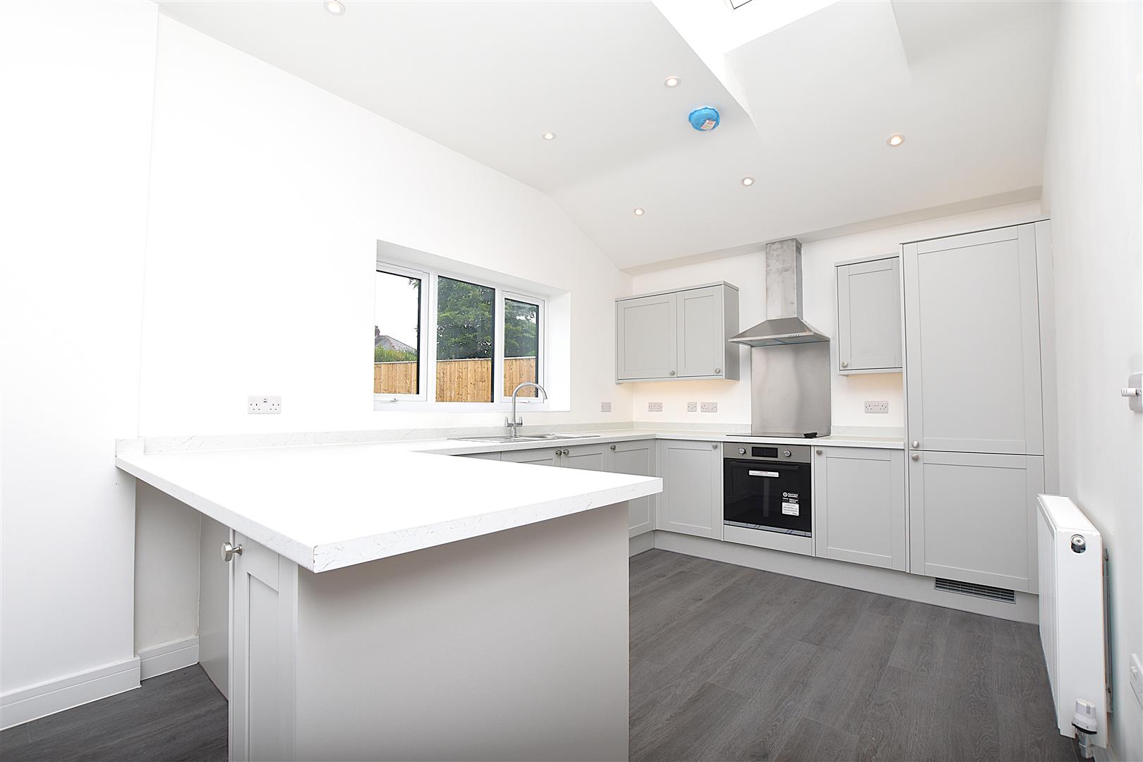 Fully refurbished to an exemplary standard is this stunning 3 bedroom detached bungalow boasting panoramic views towards the Welsh Hills with garage and good sized rear garden conveniently located just a short walk to Chester Road and the frequent Wrexham to Chester bus service. This ‘turn key’ bungalow offers light and airy accommodation, stylish features and a sociable entertaining space, briefly comprising a pillared entrance porch with composite door opening to the welcoming hall, attractive Oak veneer doors, wood effect laminate flooring that continues through the reception rooms and useful storage cupboards. Impressive open plan living space overlooking the rear garden including a new fitted kitchen with integrated appliances and work surface areas incorporating a breakfast bar, dining area with partial raised ceiling with Velux windows and French doors opening to the full width Indian stone paved patio. 3 bedrooms with built in wardrobes to the principal bedroom, new 4 piece white bathroom suite with bath and separate shower enclosure and an additional washroom with w.c. and wash basin with vanity unit. To the outside, the private drive provides parking for 3-4 cars, a garage with the convenience of an electric door, contemporary black external lighting highlighting the newly rendered walls and an Indian stone paved path that continues either side of the bungalow into the rear garden. The good sized garden offers excellent outdoor entertaining space with a large stone paved patio for alfresco dining and lawned area beyond within new timber fencing. NO CHAIN. Energy Rating – D (60)