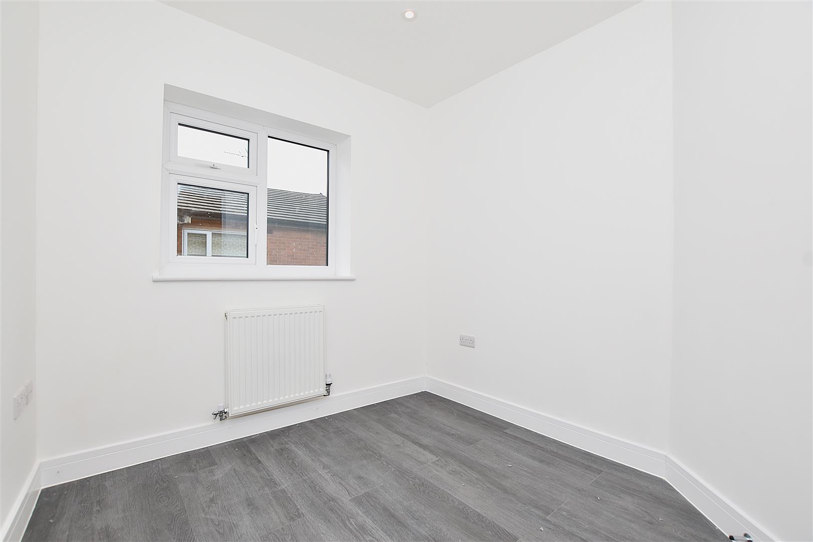 Grey wood effect laminate flooring, oak veneer doors, upvc double glazed window, inset ceiling spotlights, radiator, ceiling hatch to roof space, sliding door storage cupboard housing the Worcester gas combination boiler and consumer unit and a separate two door cupboard.