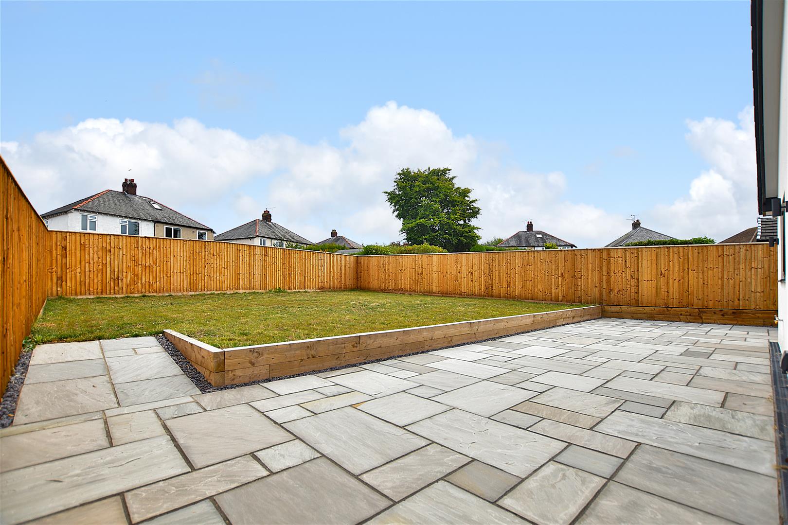 An Indian stone paved path leads to the entrance porch bordered by a lawned area. Black up and down wall lights create an impressive evening scene and gated Indian stone paved paths either side of the bungalow lead to the generous rear garden and flows into a full width paved patio ideal for outdoor entertaining, external electric sockets, lawned garden and new timber fencing.
