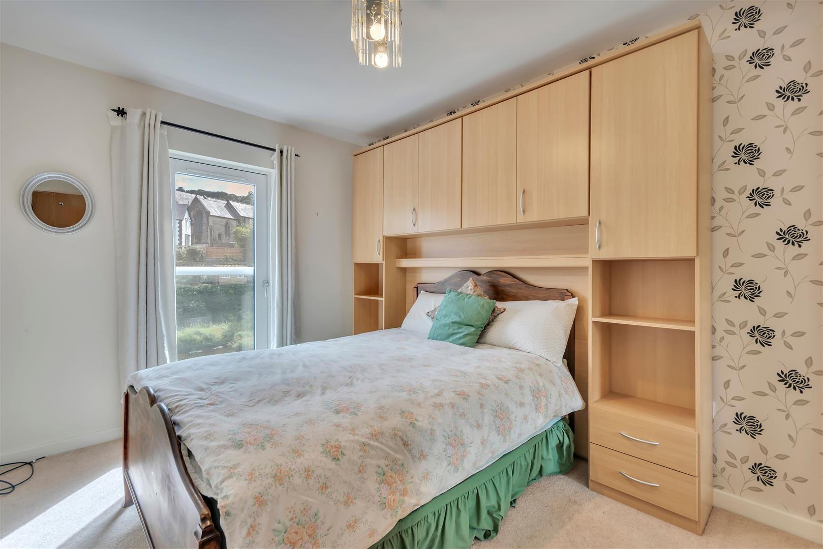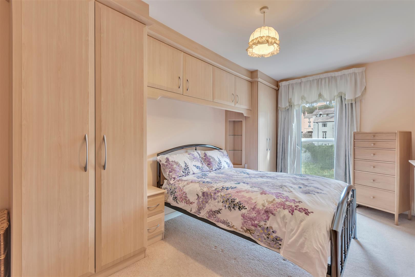 A double bedroom with built in storage and overbed units, double glazed door to Juliet Balcony with views over the River Dee, radiator.
