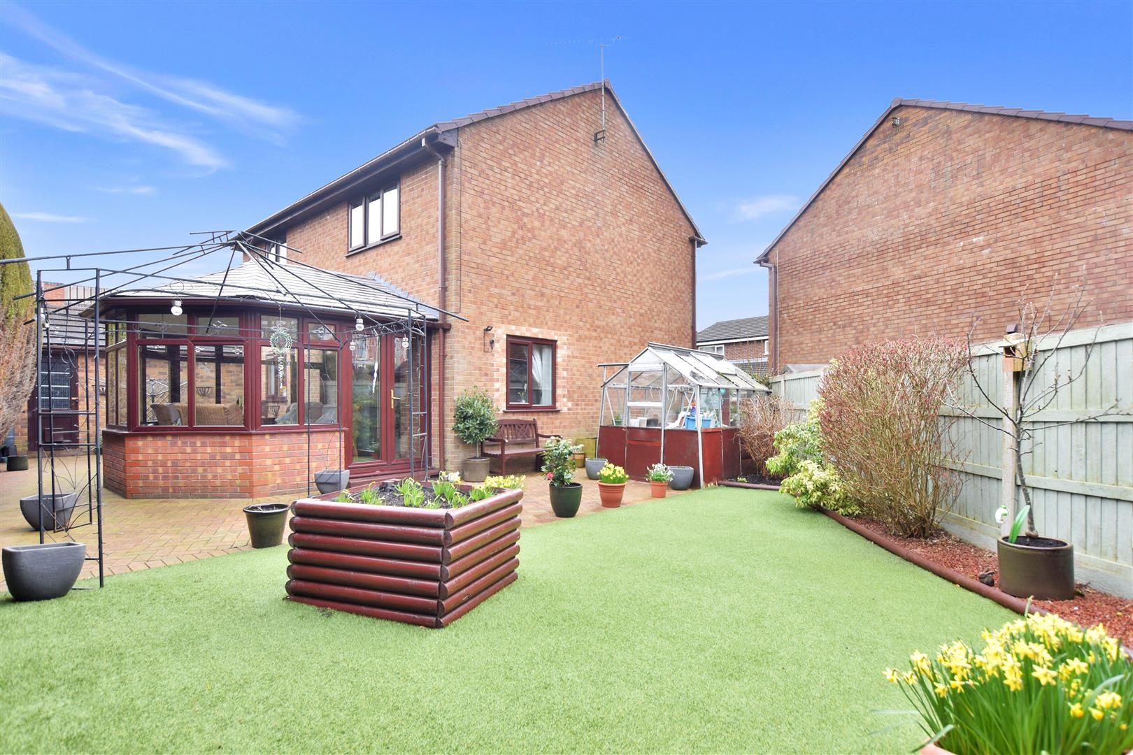 The property is approached along a private driveway providing ample parking and guest parking and leading to a detached brick built garage having electric roller door to front and side personal door together with lighting and power. The front garden is laid with artificial grass for low maintenance and a side rockery style garden planted with a variety of shrubs. A gated brick paved path leads into the rear and side garden which enjoys an excellent degree of privacy together with a sunny aspect and includes two patio areas for outdoor entertaining, artificial grass, space for greenhouse, decorative gravel, outdoor electric sockets, external lighting, flowerbeds and privacy hedging.