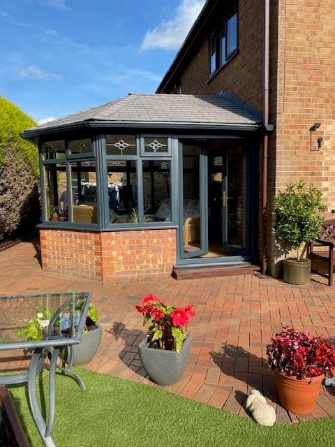 Upgraded in recent years with an insulated light tiled roof with inset ceiling spotlights, upvc double glazed windows on brick plinth overlooking the garden, upvc double glazed French doors giving access to a brick paved patio and radiator.