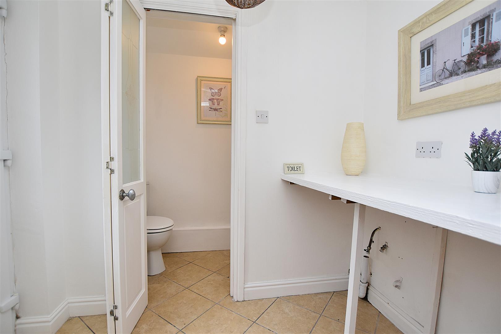 Appointed with a low flush w.c, corner wash basin, single glazed upvc window and tiled flooring.