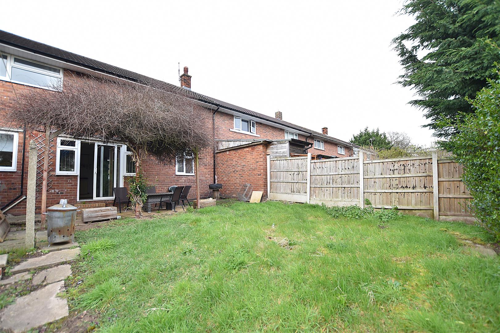 A spacious 3 bedroom double fronted mid terrace house having the benefit of a private drive and good sized rear garden conveniently located on the outskirts of the city centre yet having a range of amenities nearby. The accommodation briefly comprises a canopy porch, entrance hall with stairs to 1st floor, dual aspect lounge, dining room with patio doors leading to the rear garden and a fitted kitchen. The 1st floor landing connects the 3 well proportioned bedrooms, 2 of which are doubles, and a bathroom. Gas fired central heating via a combi boiler and Upvc double glazing. To the outside, a private drive is alongside the lawned front garden whilst the rear garden enjoys a good degree of privacy with a sunny aspect and includes a patio area with pergola above, brick store shed, lawn and further garden area beyond. NO CHAIN. Energy Rating – D (58)