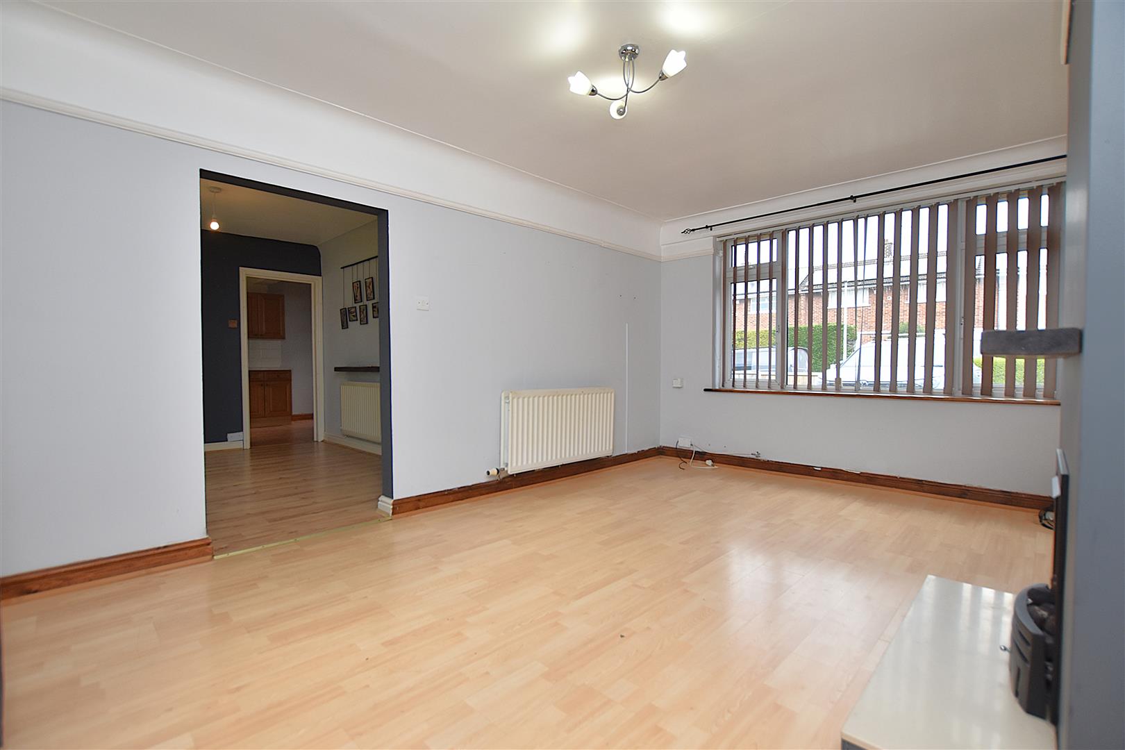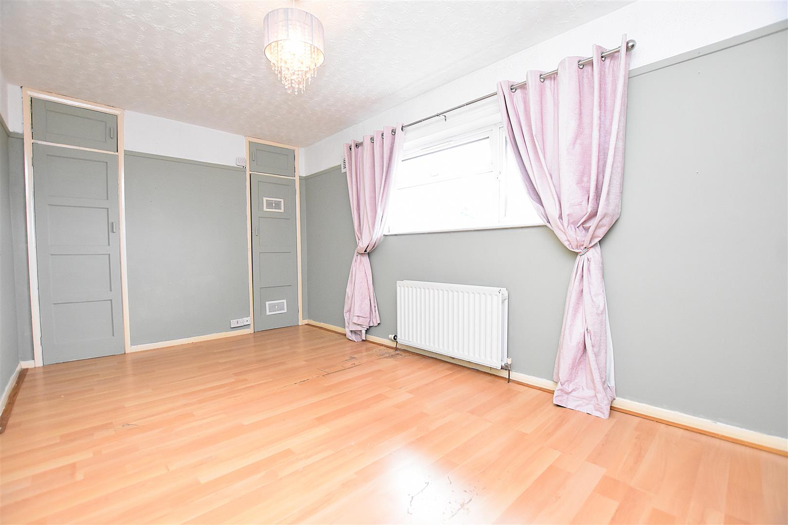 Upvc double glazed window to front, radiator and wood effect laminate flooring.