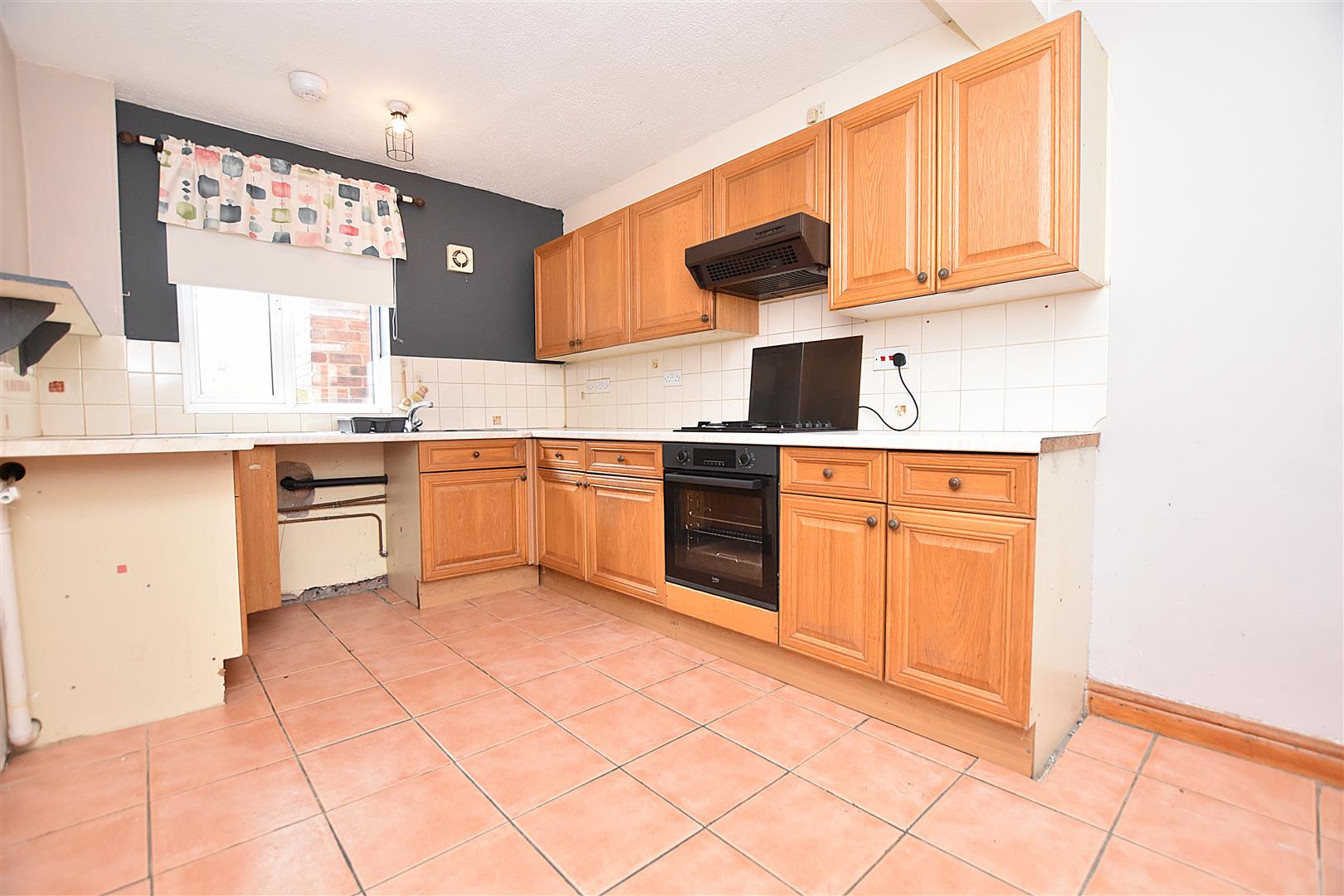 Appointed with a range of base and wall cupboards with work surface areas incorporating a stainless steel single drainer sink unit with mixer tap and upvc double glazed window above overlooking the rear garden, four ring gas hob with oven/grill below and extractor/filter fan above, plumbing for washing machine, part tiled walls, tiled flooring, radiator, pantry style cupboard and part glazed external door.