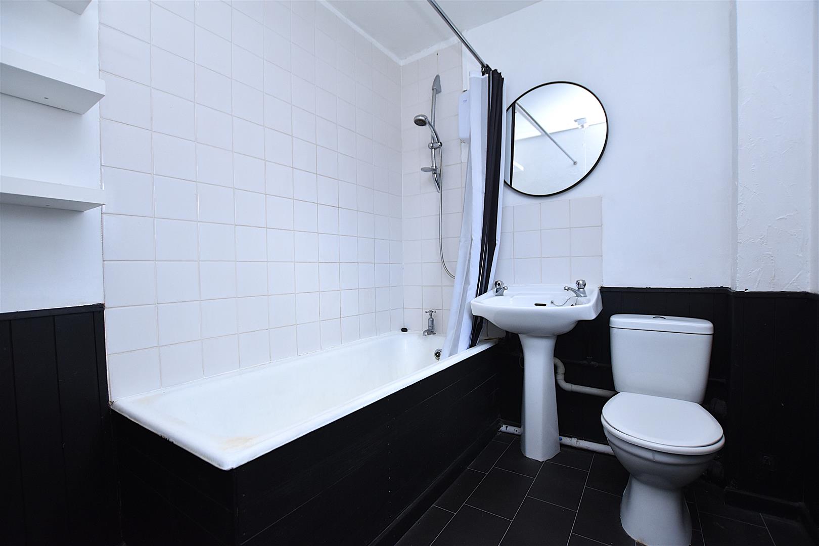 Appointed with a pedestal wash basin, low flush w.c, bath with electric shower over, part tiled walls, upvc double glazed window, radiator, tiled flooring and extractor fan.